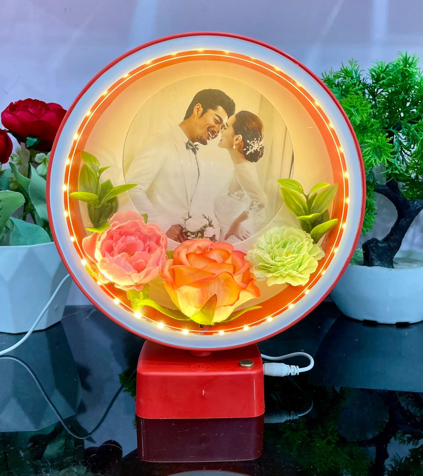 Beautiful Round Shape Touch Photo Frame Lamp With Flowers (Size: 24CM)