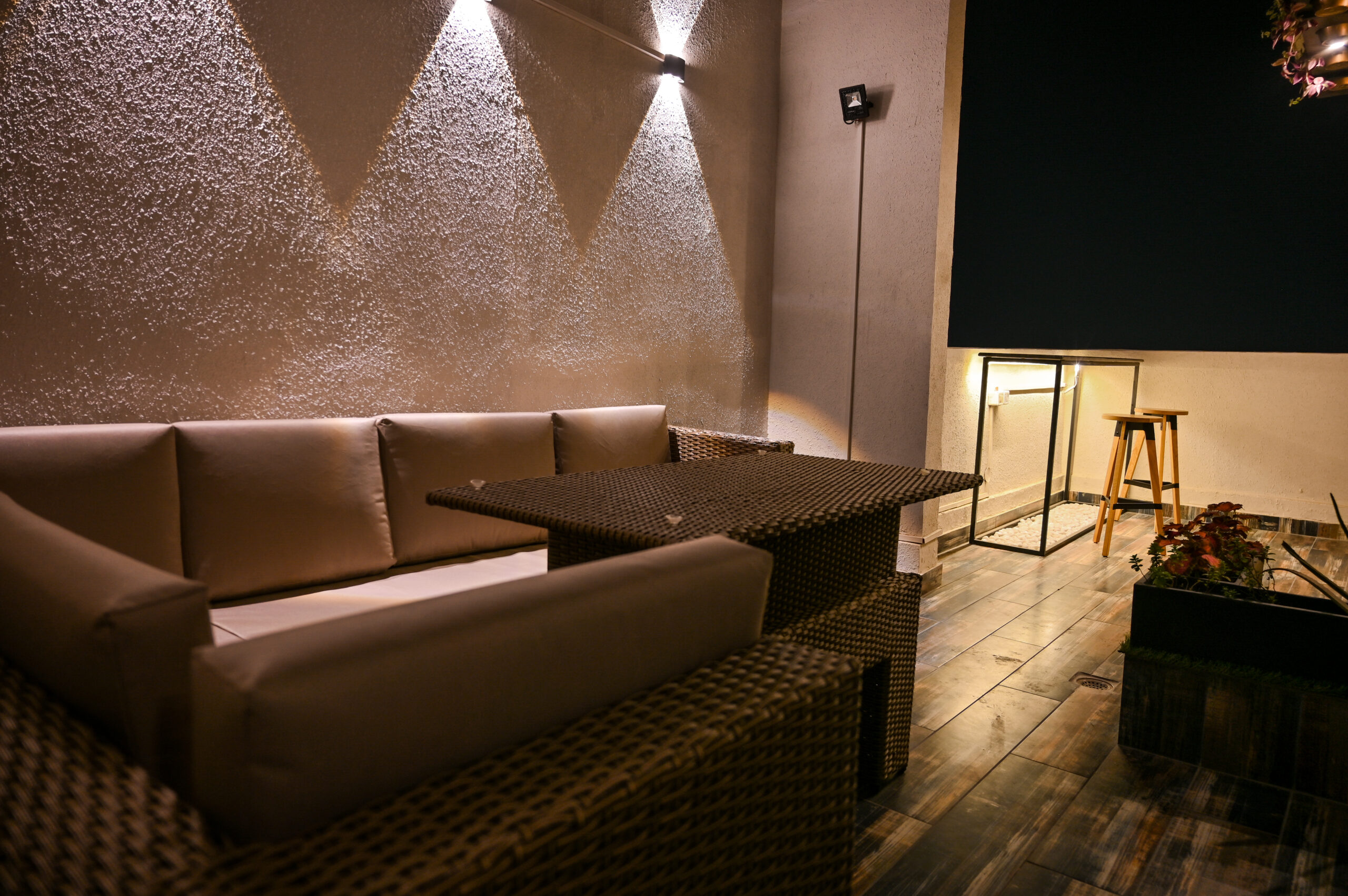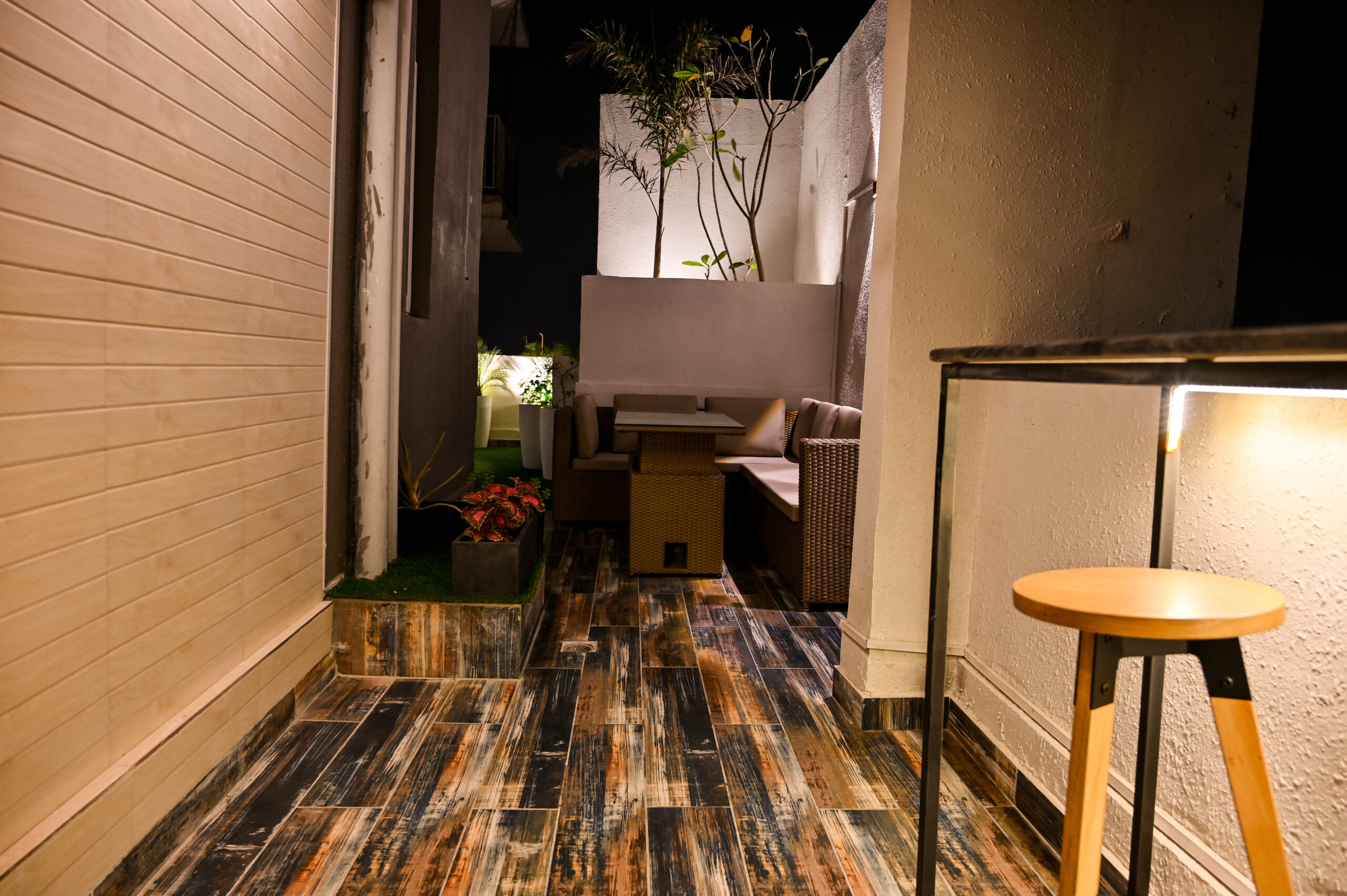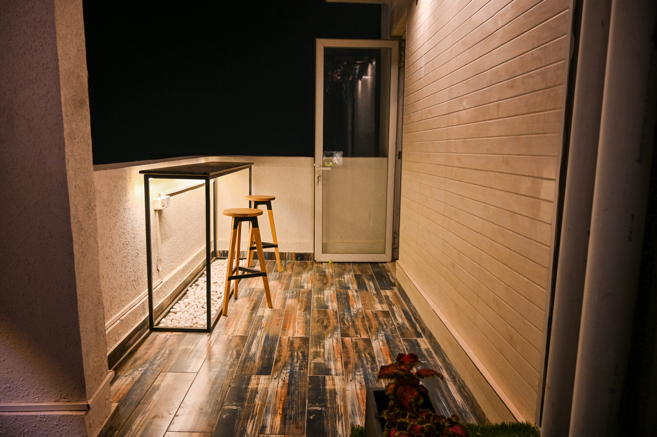 A perfectly balanced balcony where modern design meets comfort, ideal for moments of relaxation in a compact urban setting.