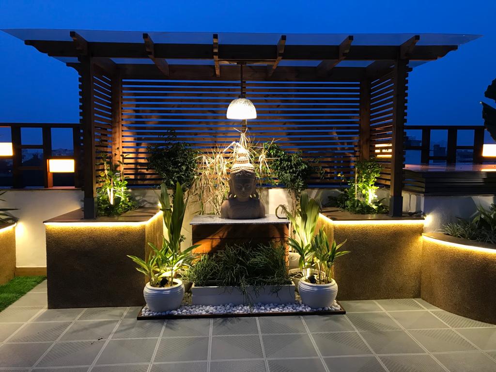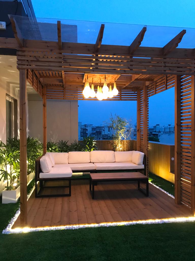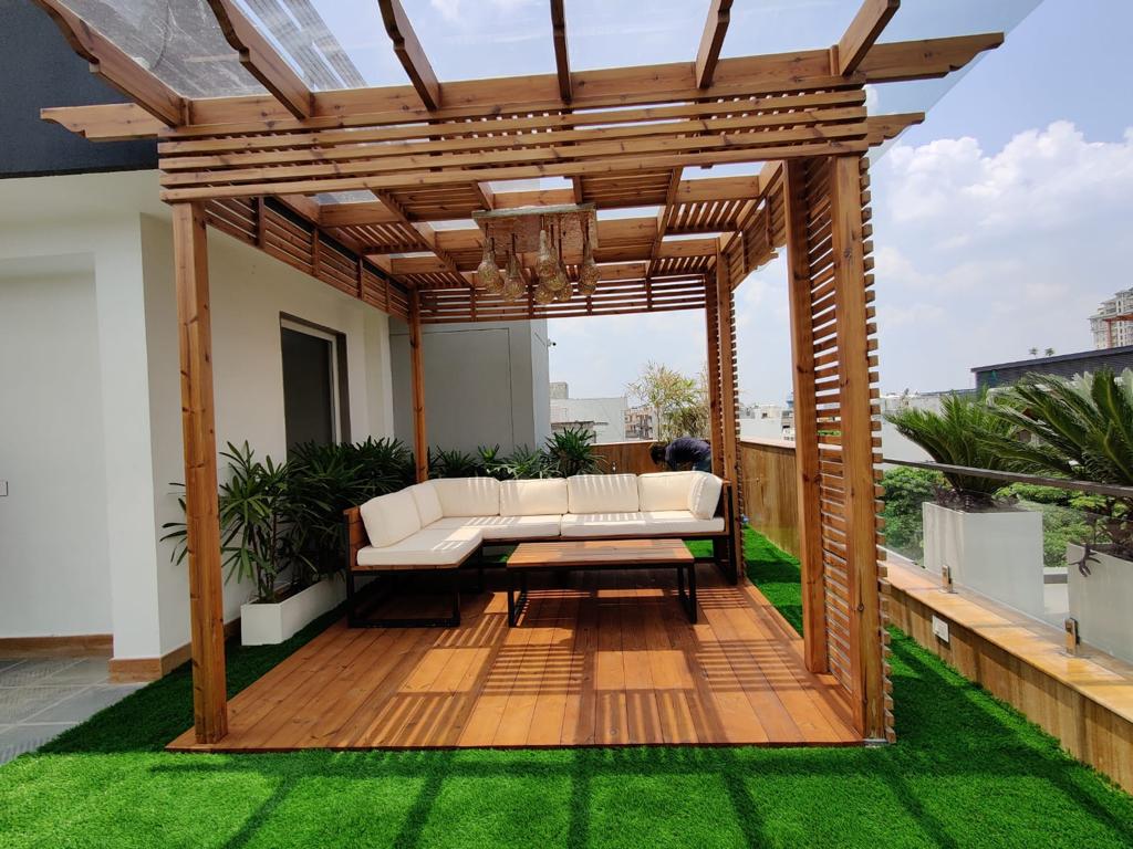A breathtaking 5000 sq. ft. terrace garden that redefines outdoor living — where modern design, lush greenery, and open-air comfort come together beneath a graceful pergola.