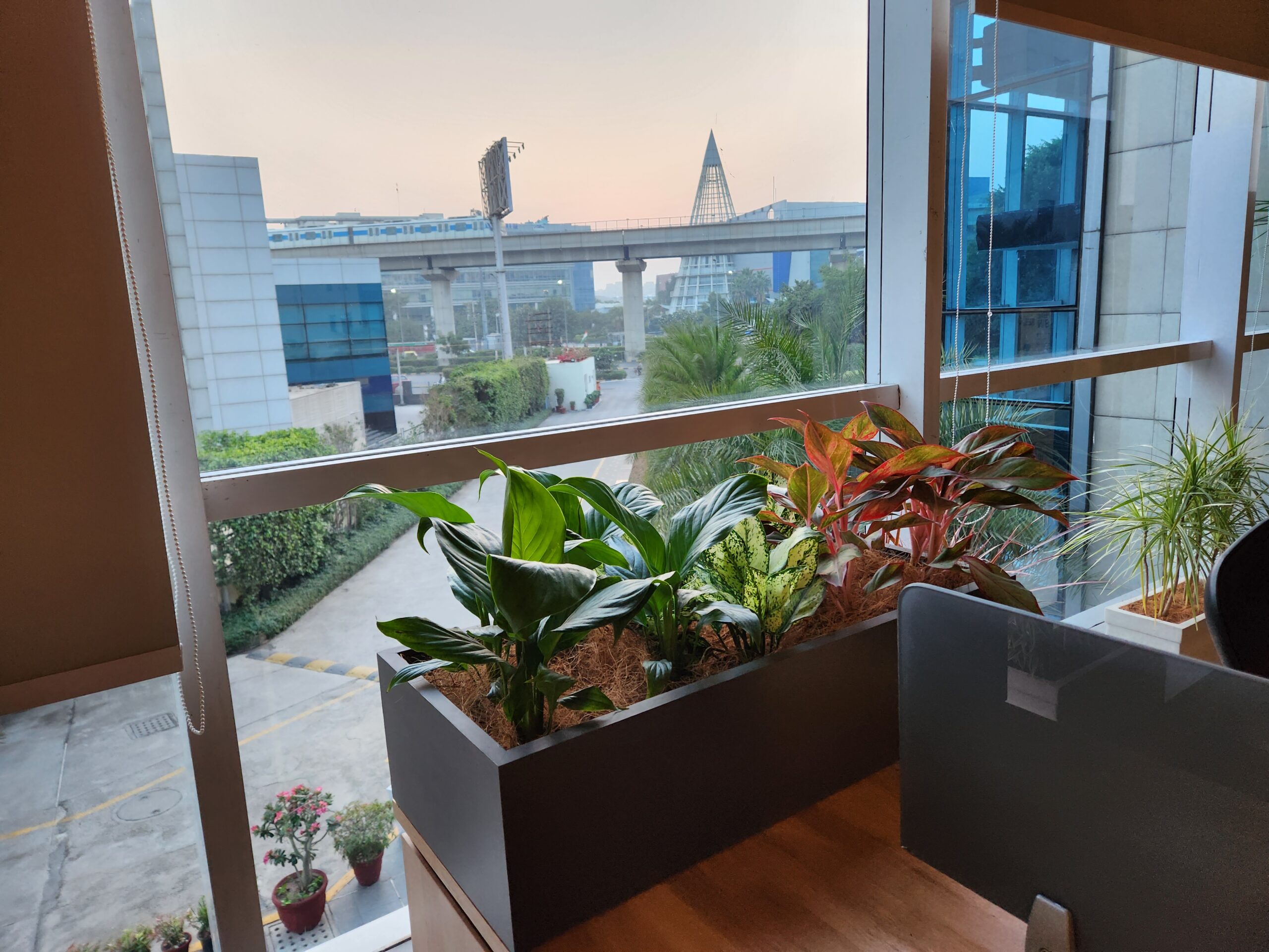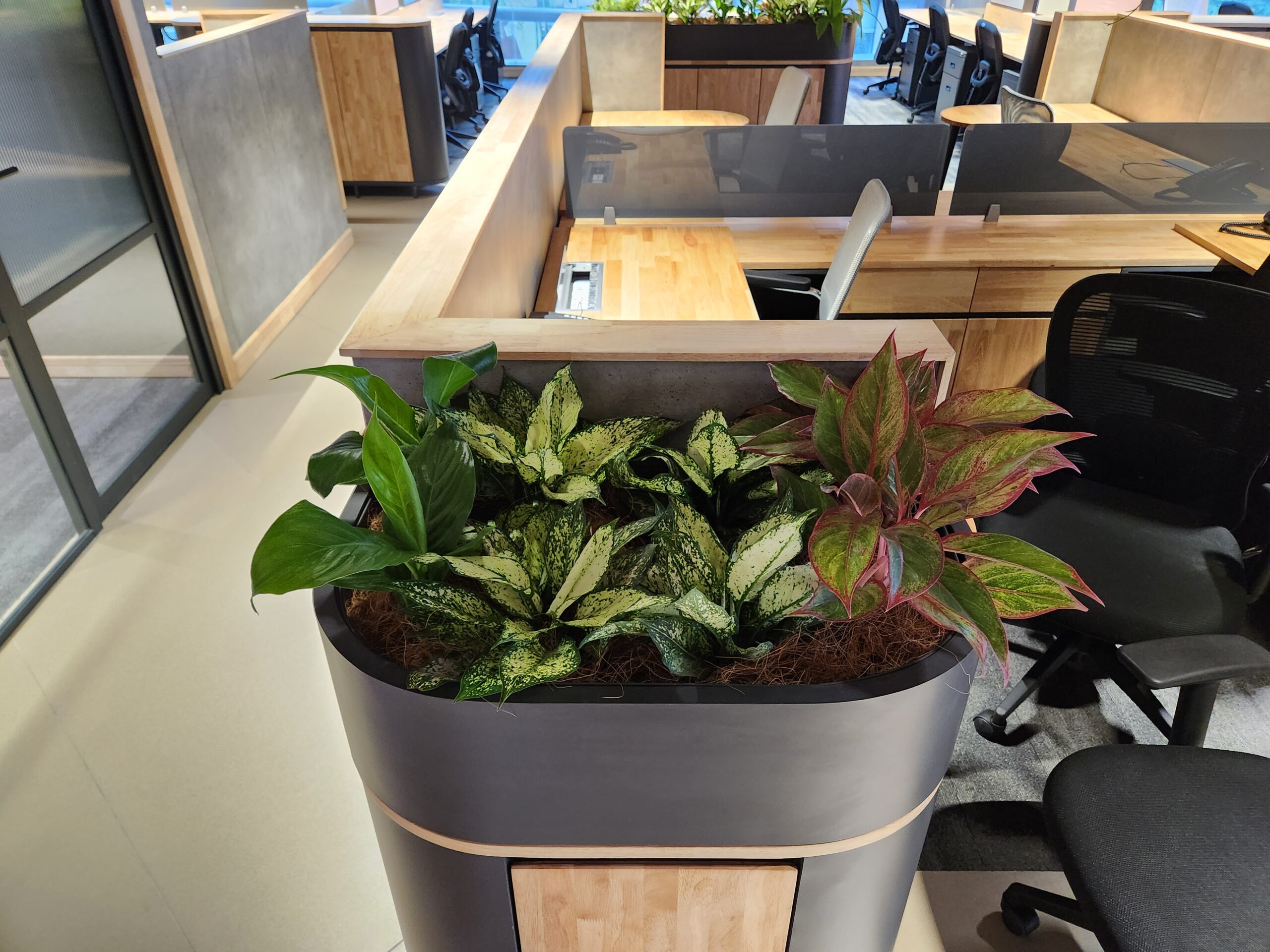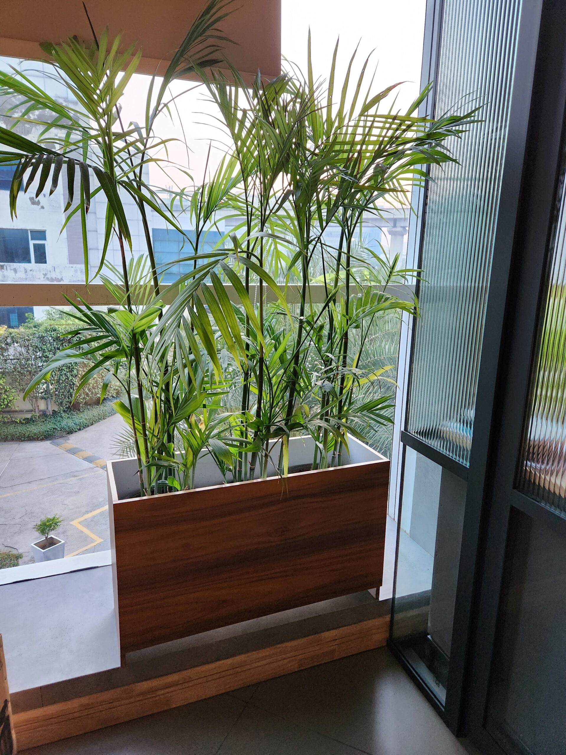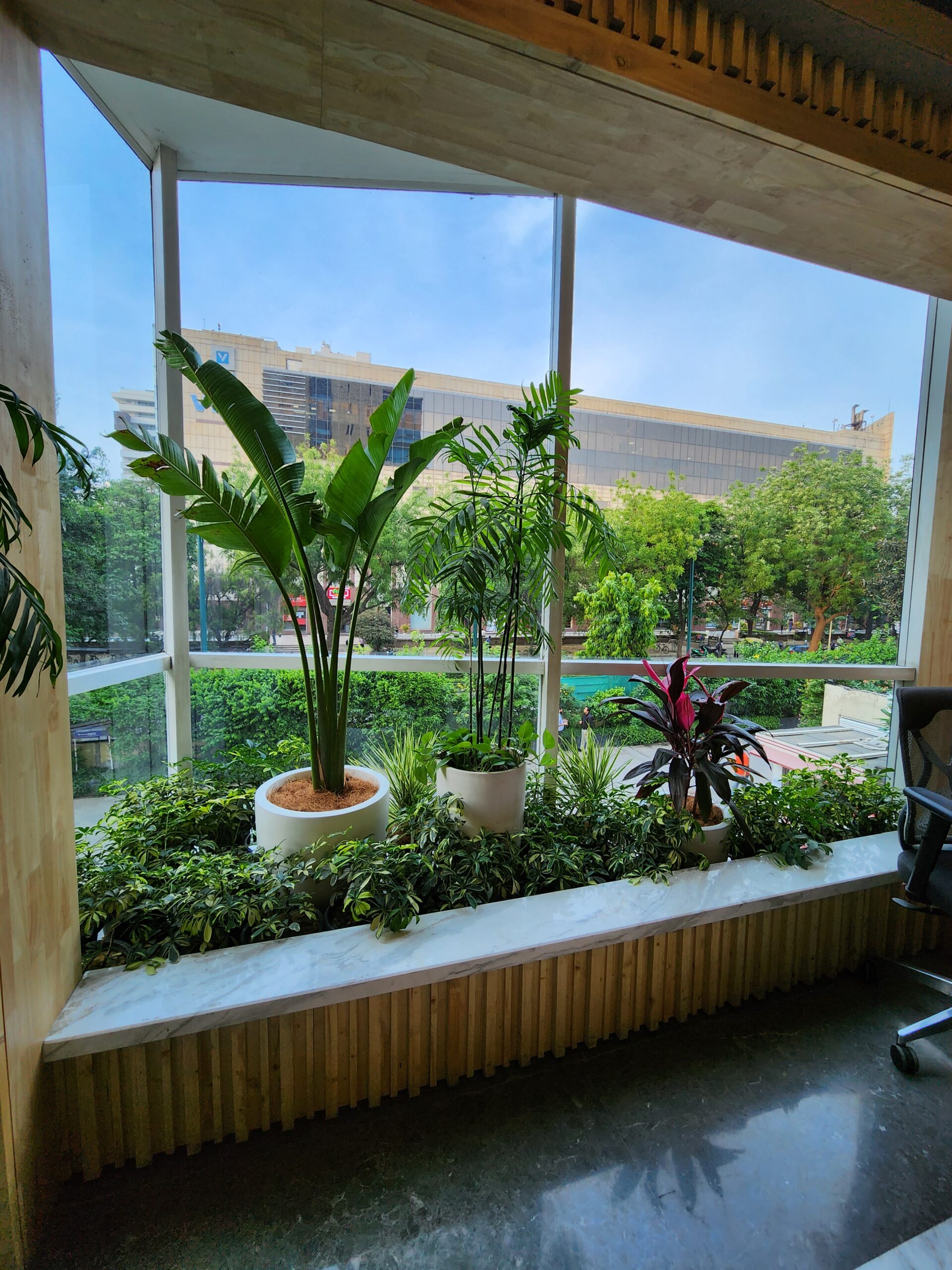 Sleek ceramic, metal, and wooden planters complement the office’s contemporary interiors, adding natural warmth to reception zones, workstations, and breakout areas.