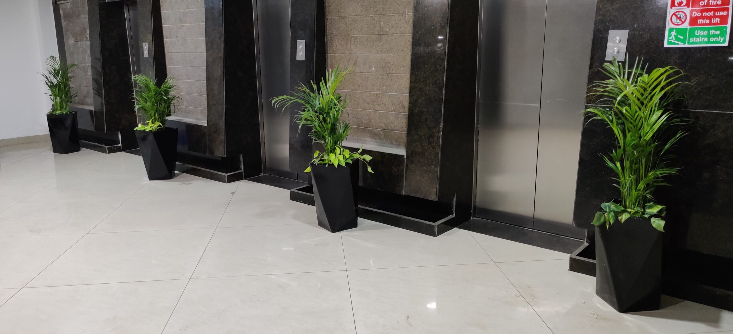 Sleek metal, terracotta, and wooden planters blend seamlessly with the modern interiors, enhancing aesthetics while maintaining a calm, natural vibe.
