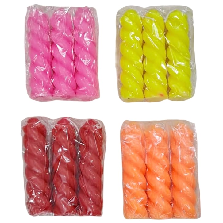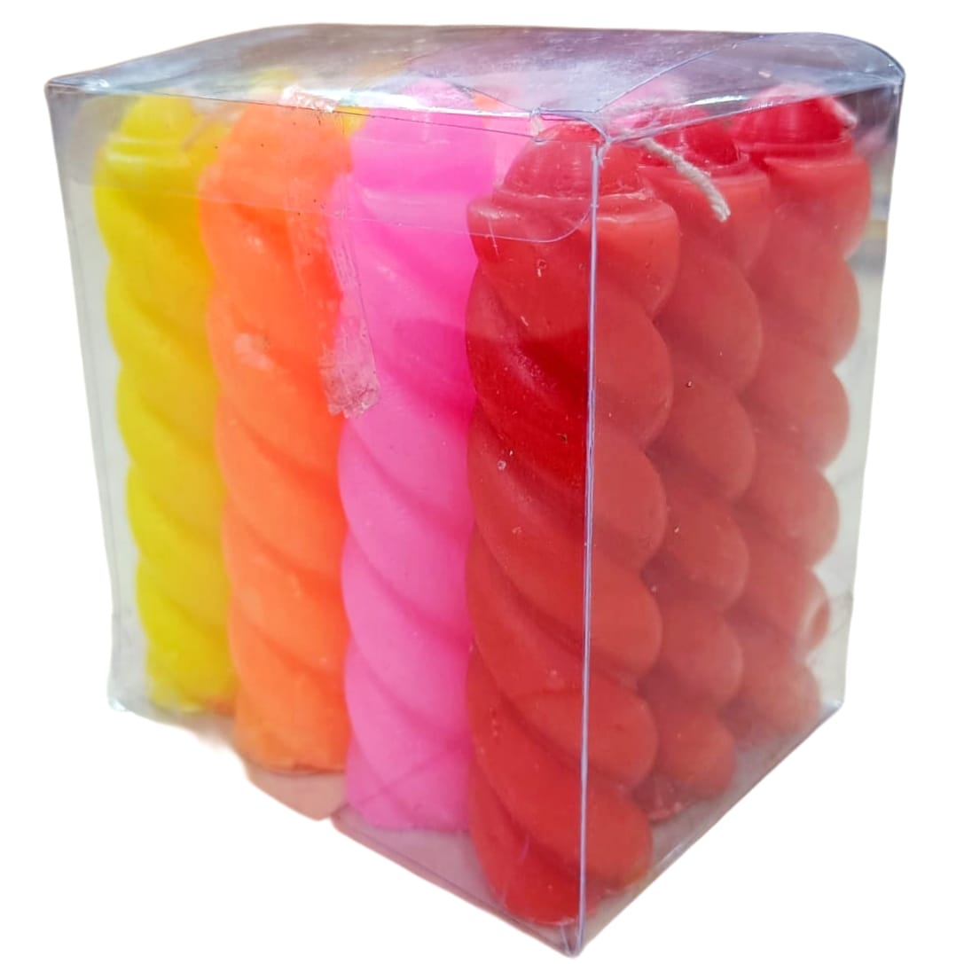 12 Piece Multi Colour Big Twisted Candles - 1 Unit