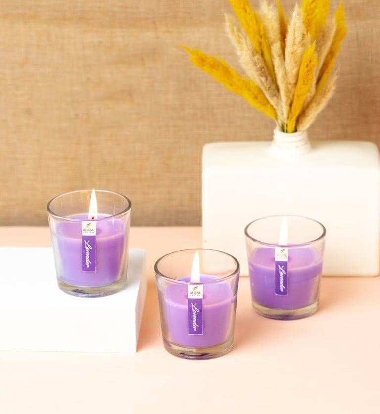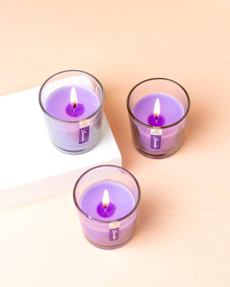 Whether used together as a decorative set or placed individually around your home, this set of 3 glass votive candles is a versatile and stylish décor essential.
