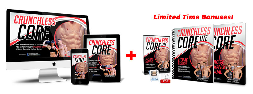 • No Crunches or Sit-Ups Required Uses alternative core exercises to reduce neck and back strain.