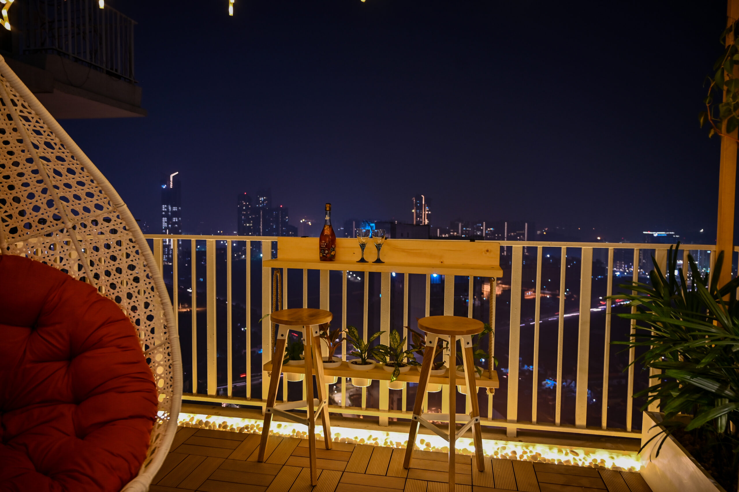 Modern Balcony With Swing and Railing Table