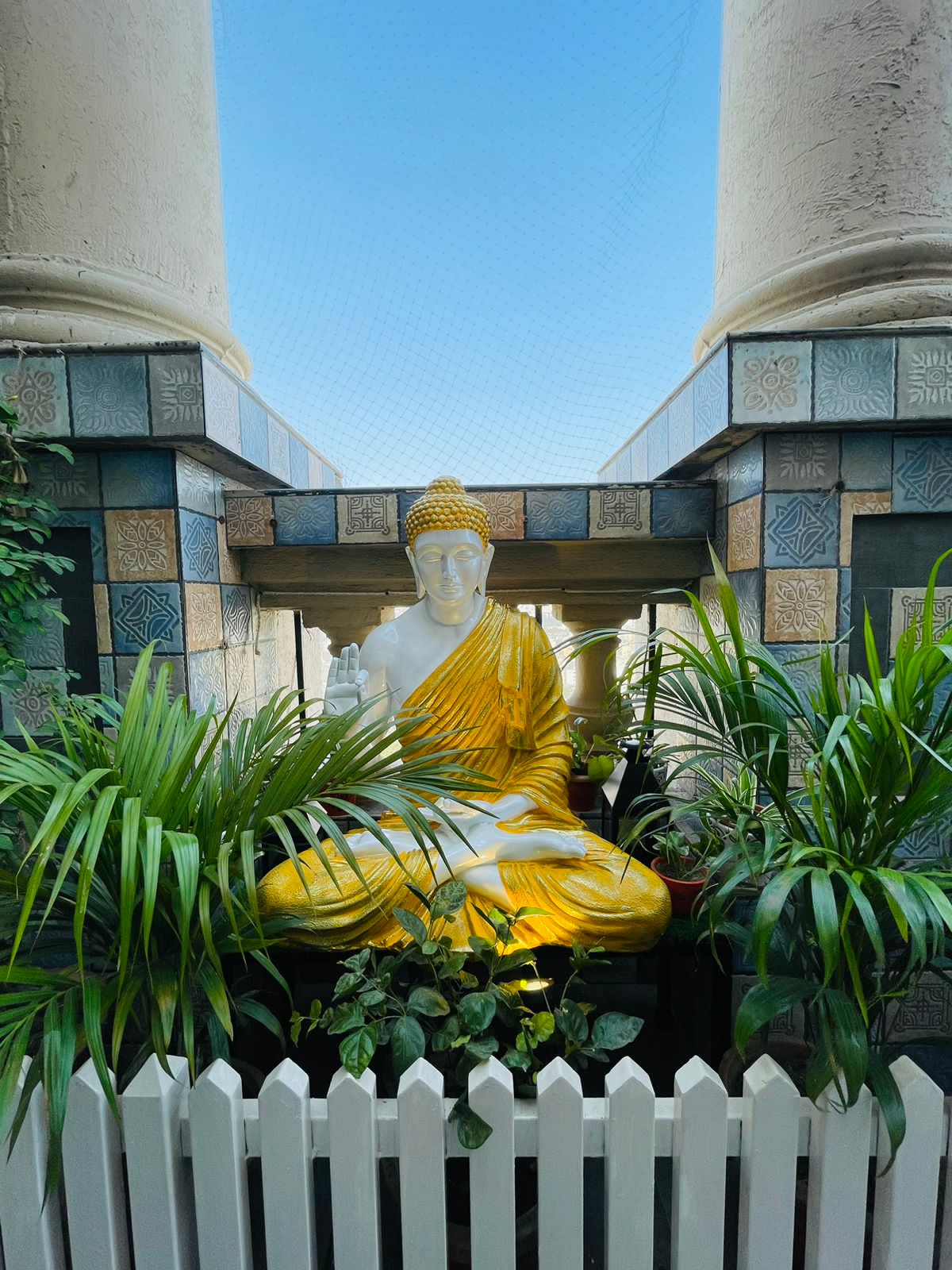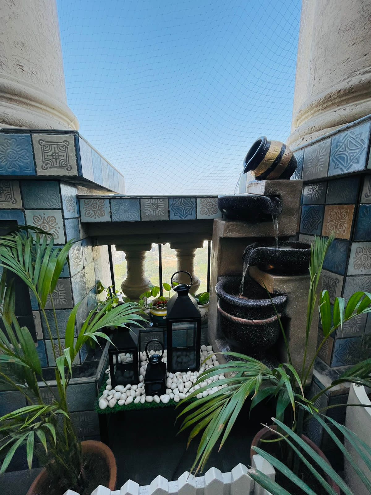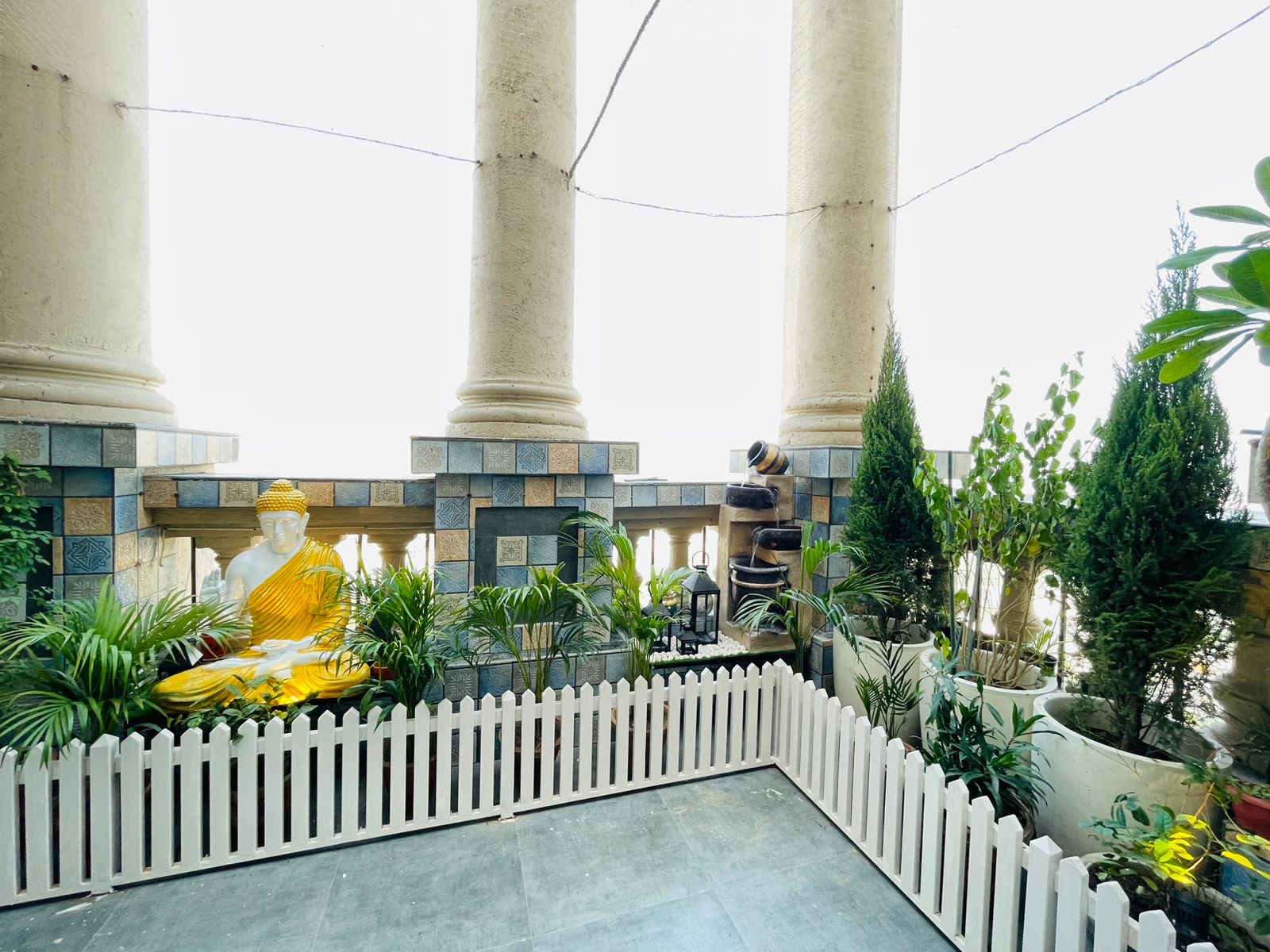 Balcony Garden With Garden Fencing and Fountain