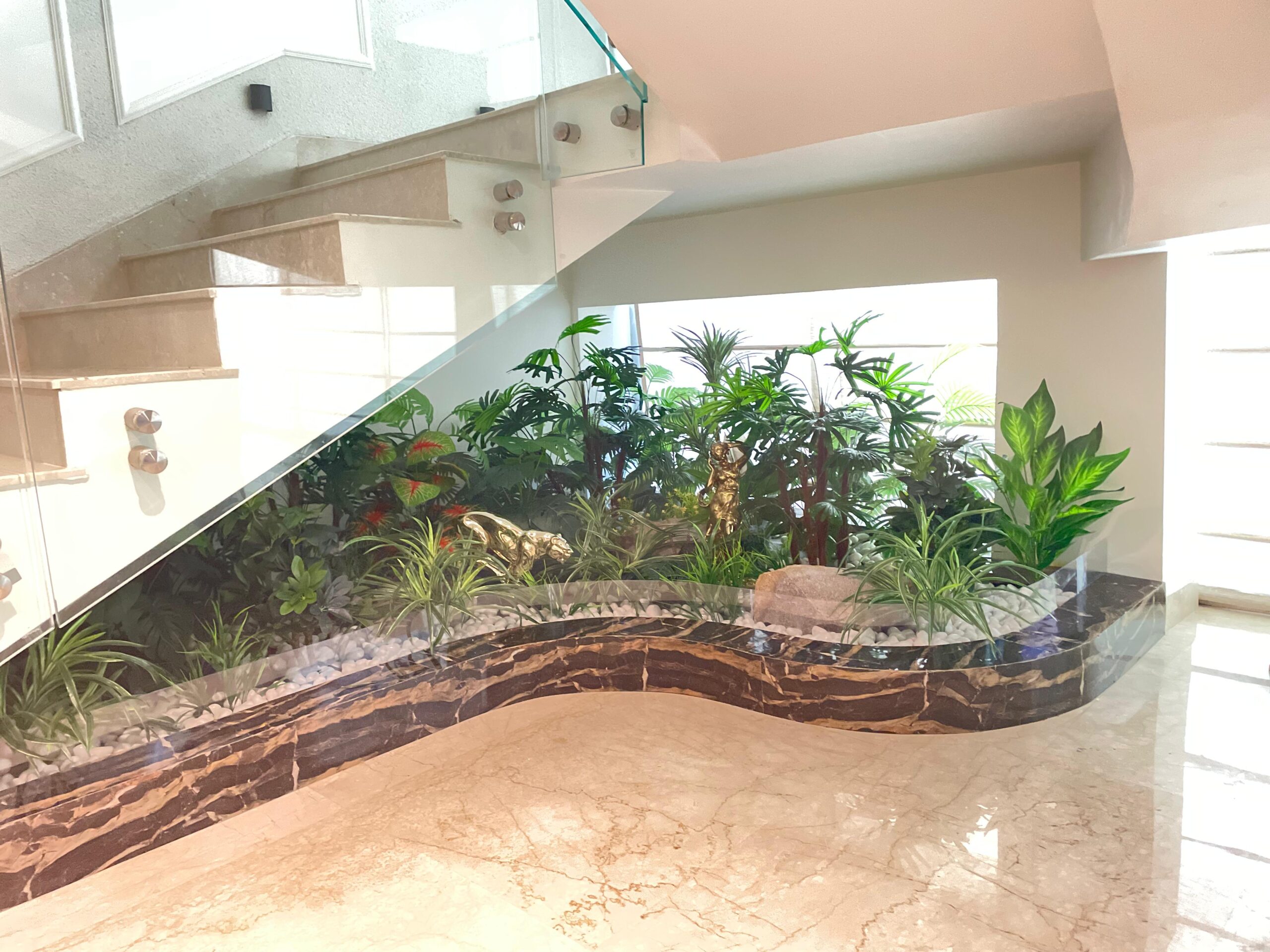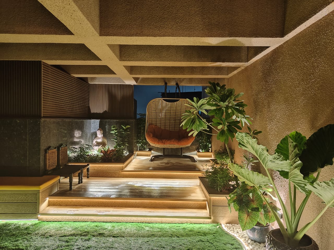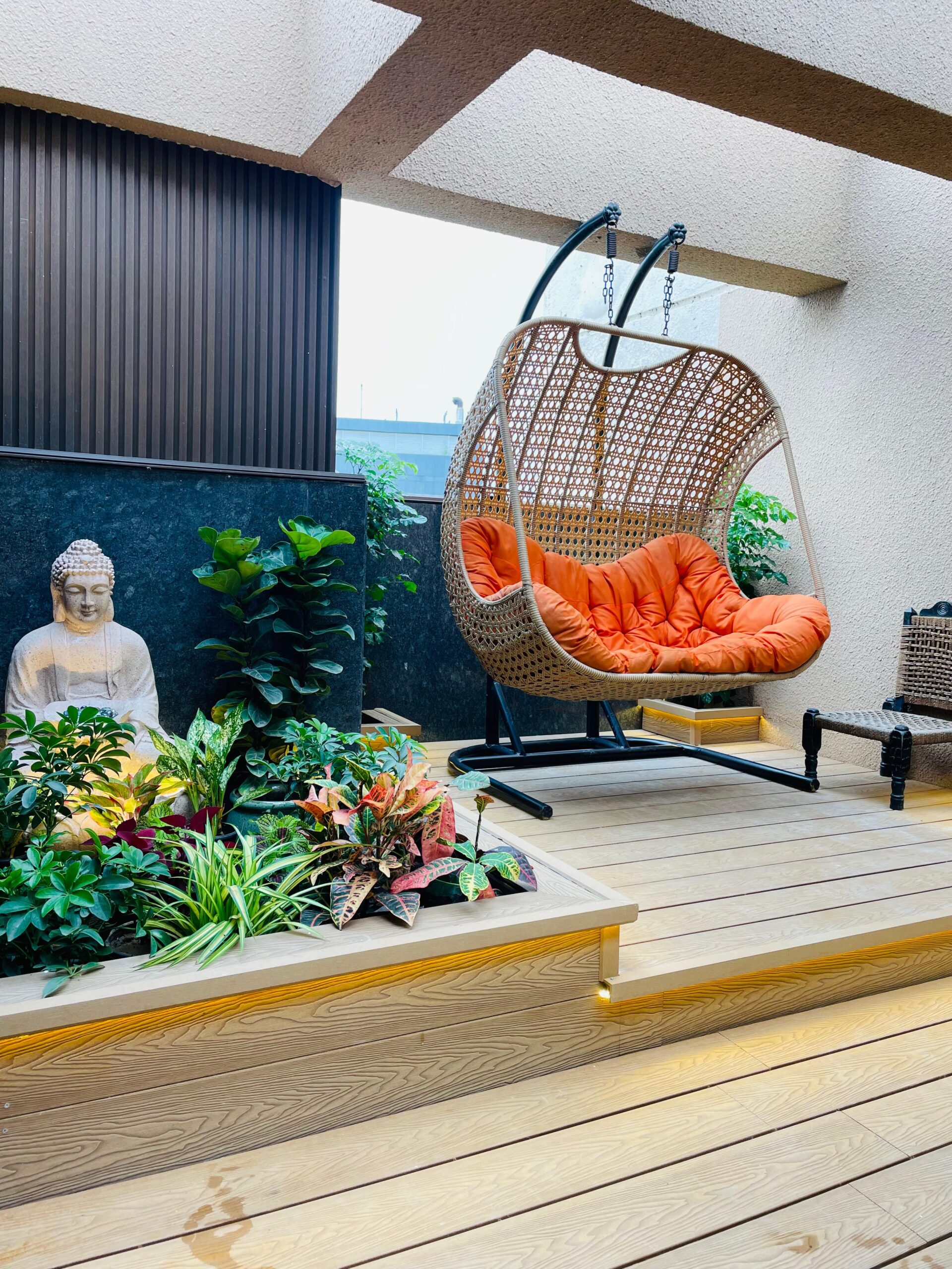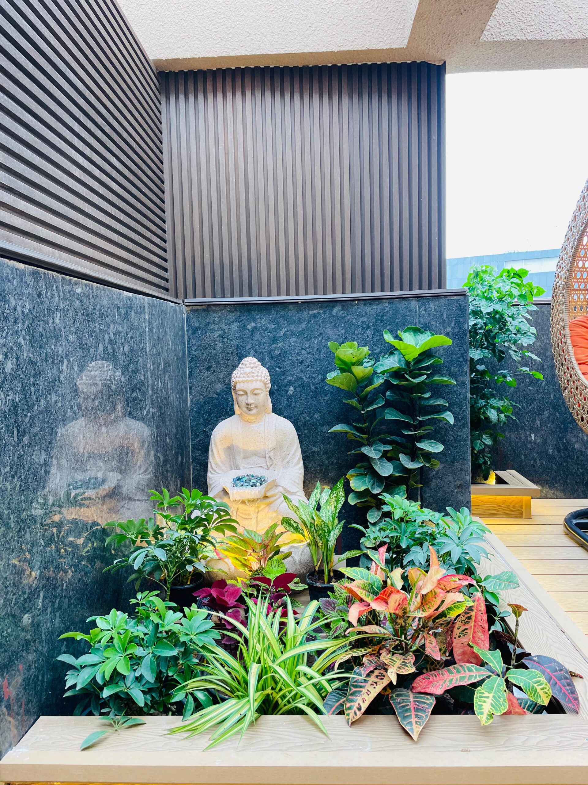 Balcony Garden with Decking, Planters and Buddha Fountain