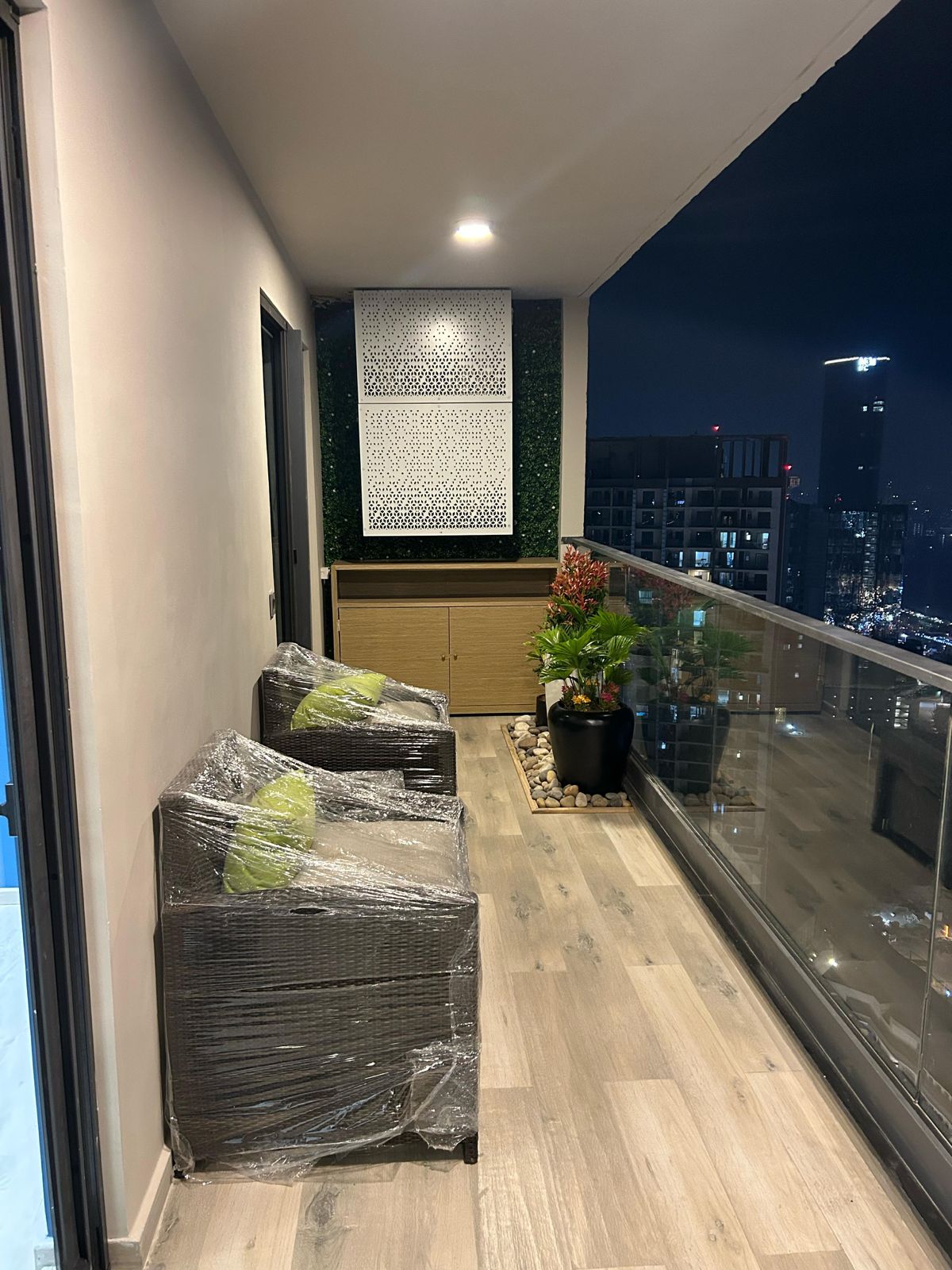Luxury Balcony with Wooden Flooring & Custom Backdrop