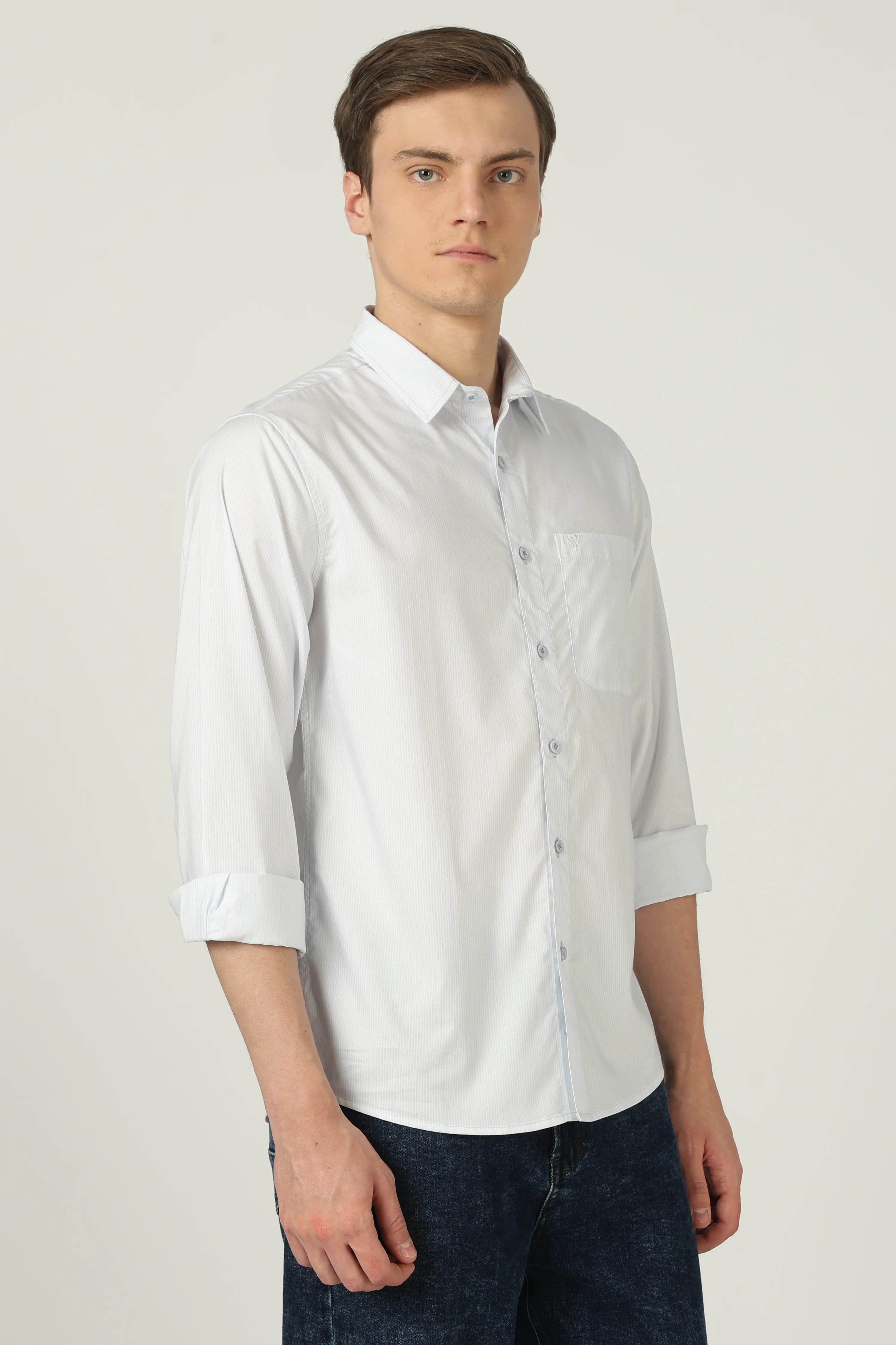 Redefine everyday elegance with a crisp white shirt that elevates cotton to its most refined form. Crafted from 100% premium long staple cotton, this white shirt is enhanced with an advanced liquid ammonia finish that strengthens every fibre while imparting a silky, smooth texture. The fabric feels luxuriously soft against the skin, drapes naturally, and maintains a clean, bright white appearance with lasting color depth, delivering a refined look that stands the test of time. Lightweight, breathable, and finished for superior softness, it ensures all day comfort while staying crisp and polished, even in warm or moderate climates.