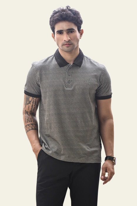 Elevate your everyday wardrobe with this black polo t-shirt, crafted from premium mercerized cotton with a naturally smooth, lustrous finish. The mid-weight fabric balances structure and softness, offering a breathable, polished drape that feels luxurious on the skin.