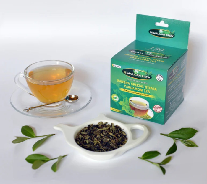 Experience the perfect blend of health and flavor with Himalayan Brew Kangra Special Stevia Cardamom Tea. Sourced from the pristine Kangra Valley, this premium tea combines the aromatic warmth of fresh Cardamom (Elaichi) with the natural sweetness of Stevia. A 100% sugar-free and calorie-conscious choice, it offers a refreshing, guilt-free experience that boosts immunity and aids digestion. Perfect for those seeking a sweet, aromatic cup without the health risks of refined sugar.