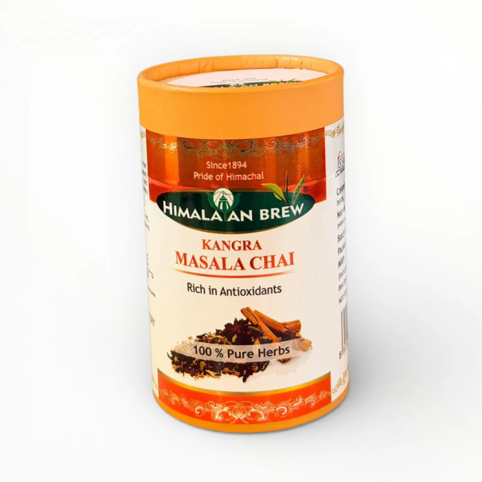 Elevate your daily tea ritual with Himalayan Brew Kangra Masala Chai. This premium blend features high-altitude long leaf tea from the Kangra Valley, infused with a hand-selected mix of traditional Indian spices. Each sip delivers a robust, full-bodied flavor profile complemented by the aromatic warmth of cardamom, ginger, cloves, and cinnamon. Packaged in a premium airtight tin to preserve its natural oils and freshness, this orthodox masala tea offers a perfect balance of spice and strength, naturally boosting immunity and revitalizing your senses.