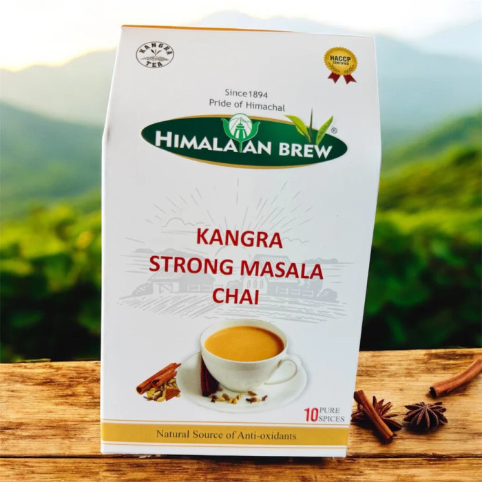 Reinvigorate your senses with the bold and spicy notes of Himalayan Brew Strong Masala Chai. This robust blend combines premium high-altitude black tea from the Kangra Valley with a powerful infusion of traditional Indian spices including ginger, cardamom, cloves, and black pepper. Specifically crafted for those who prefer a "Kadak" (strong) cup of tea, it delivers a deep amber liquor and a warming aroma that naturally boosts immunity and aids digestion. Perfect for a refreshing morning start or a revitalizing evening break.