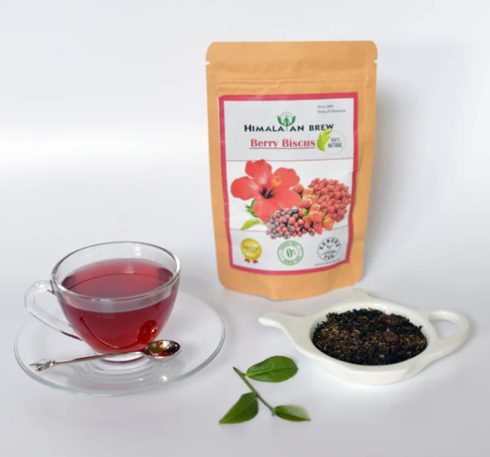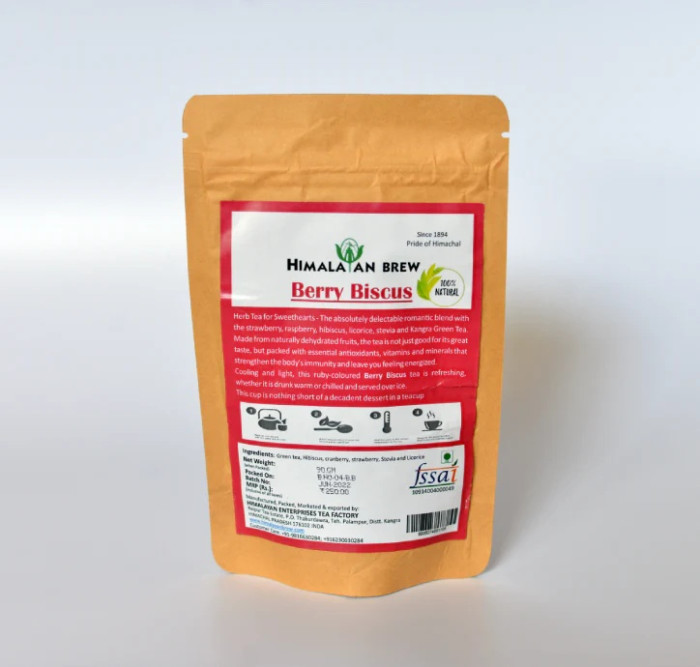 Indulge in a luscious explosion of flavor with Himalayan Brew Berry Biscus Green Tea. This enchanting blend marries the antioxidant power of high-altitude Kangra Green Tea with the tart, ruby-red elegance of Hibiscus and a sweet, sun-ripened Mixed Berry infusion. Each tea bag produces a vibrant, jewel-toned liquor that perfectly balances floral notes with a juicy, fruity finish. Rich in Vitamin C and anthocyanins, this "Berry Biscus" blend is designed to boost skin radiance, support heart health, and satisfy your sweet cravings naturally. It is equally delicious served steaming hot or as a refreshing, berry-infused iced tea.