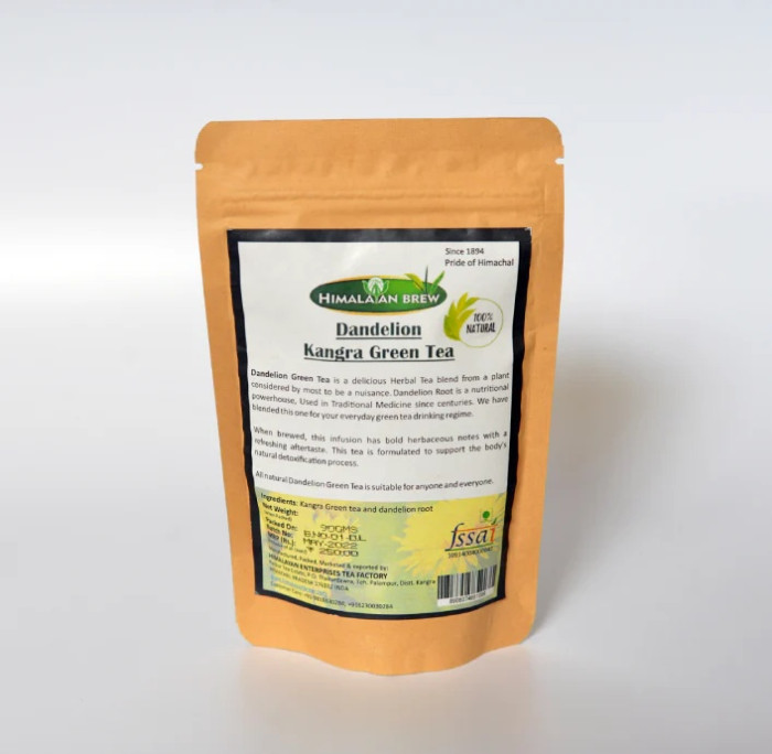Purify your system with the natural cleansing power of Himalayan Brew Dandelion Kangra Green Tea. This specialized detox blend combines premium, high-altitude Kangra Green Tea with the nutrient-rich roots and leaves of Pure Dandelion. Renowned in traditional herbalism as a potent diuretic and liver tonic, Dandelion helps flush out toxins, reduce water retention, and support healthy kidney function. Each tea bag yields a robust, earthy infusion with a pleasant, slightly toasted undertone. Rich in potassium and vitamins, this "Dandelion Green" blend is the perfect daily ritual for those looking to de-bloat, improve digestion, and maintain a clear, radiant complexion from the inside out.