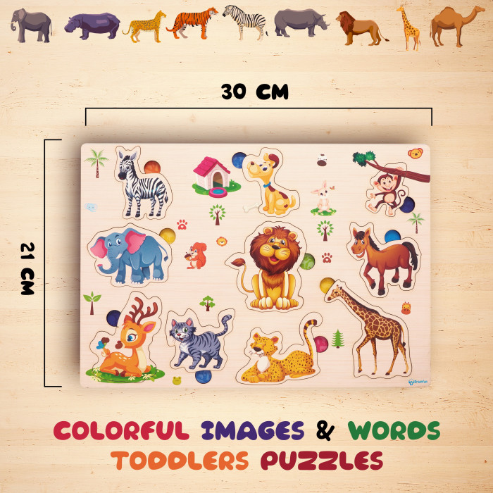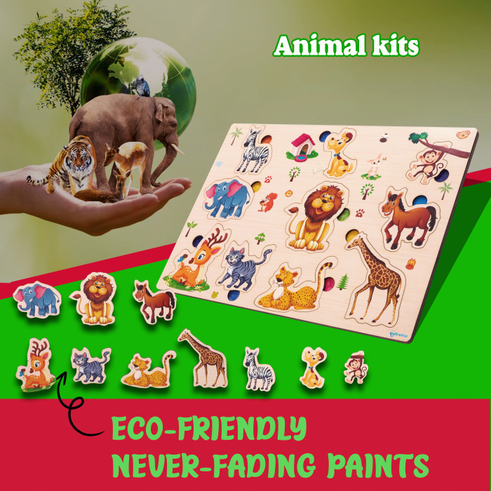 Introduce young children to the animal world with the Animal Wooden Toys Set, designed to enhance fine motor skills, hand-eye coordination, and associative thinking. This set encourages hands-on learning, letting toddlers explore shapes, textures, and patterns through play.