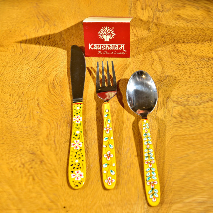 Brighten every meal with the cheerful radiance of the Hand-Painted Cutlery Set in Yellow. This premium three-piece set—comprising a dinner spoon, knife, and fork—is forged from high-quality stainless steel and features vibrant, sun-drenched yellow handles. Each piece is meticulously hand-painted with intricate, artisanal patterns that evoke a sense of warmth, joy, and summer vitality. Finished with a durable, food-safe sealant, these utensils are designed to withstand daily use while maintaining their brilliant, citrus-inspired glow. Whether you're hosting a garden brunch or simply elevating a quiet breakfast, this "Sunny Yellow" set brings a playful, sophisticated energy to your tabletop