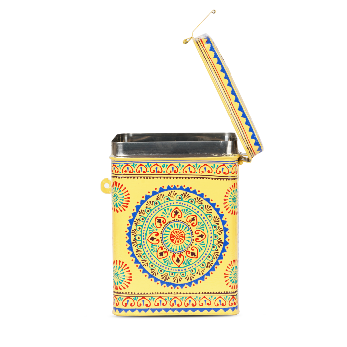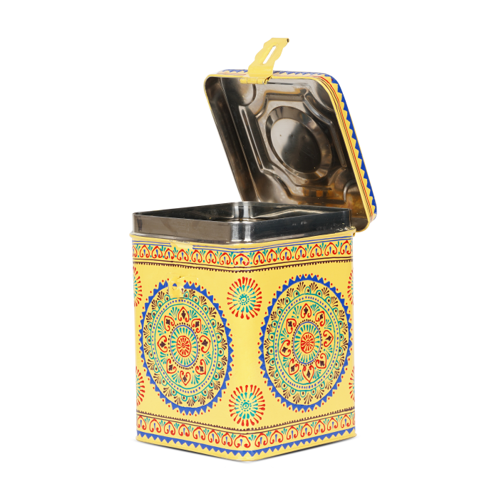 Keep your favorite treats fresh and your kitchen counters vibrant with the Hand-Painted Boho Stainless Steel Cookie Jar. This stunning storage canister features an intricate, multi-colored Bohemian mandala pattern, meticulously hand-painted by skilled artisans. Crafted from premium-grade stainless steel, it offers a lightweight yet unbreakable alternative to ceramic jars, while the airtight lid ensures your cookies, biscuits, or snacks stay crisp and flavorful. The "Boho" aesthetic blends earthy tones with vibrant accents, making it a perfect functional centerpiece for a modern or rustic kitchen. This canister is the ultimate marriage of artistic expression and practical, long-lasting durability.