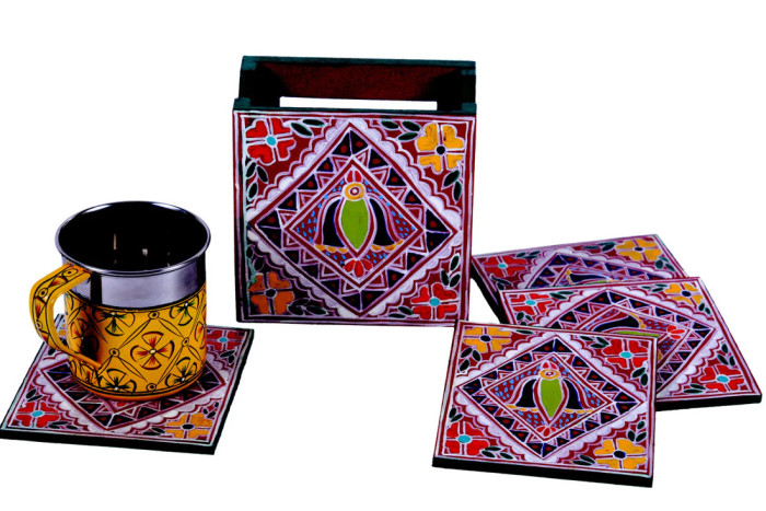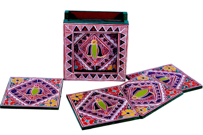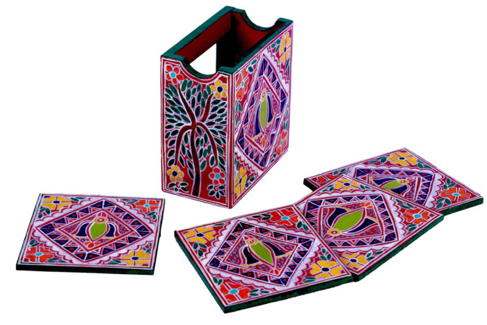 Hand Painted Madhubani Coasters set of 6 with Holder