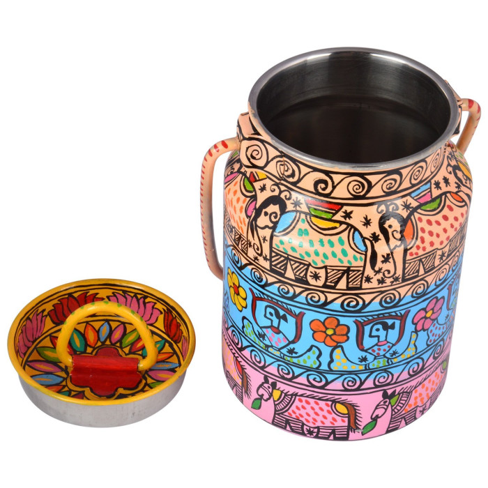 Turn every corner of your home into a festival of color with the "Celebration" Hand-Painted Bucket. This vibrant masterpiece is a true explosion of joy, featuring a kaleidoscope of intricate, multi-colored patterns that celebrate the rich heritage of Indian folk art and bohemian flair. Meticulously hand-painted by master artisans on high-grade, rust-resistant stainless steel, this bucket is as sturdy as it is stunning. Its versatile design makes it a show-stopper in any setting—use it as a festive ice bucket for parties, a bold indoor planter, or a unique storage solution for your living space. Finished with a high-gloss, waterproof sealant, the "Celebration" bucket is built to retain its brilliant, high-energy glow for years to come.