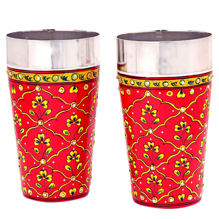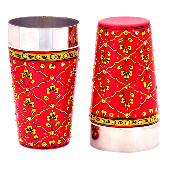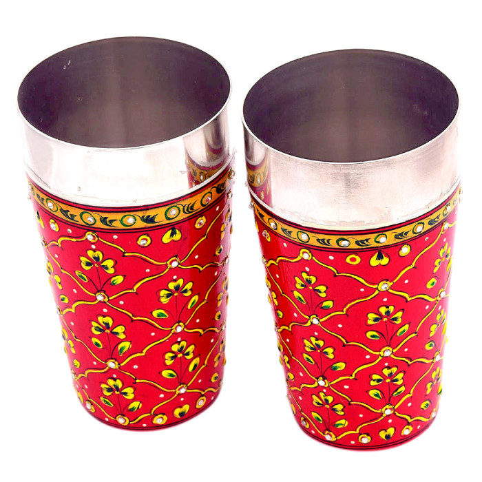 Hand Painted Red Steel Glass (600ml) - Set of 2