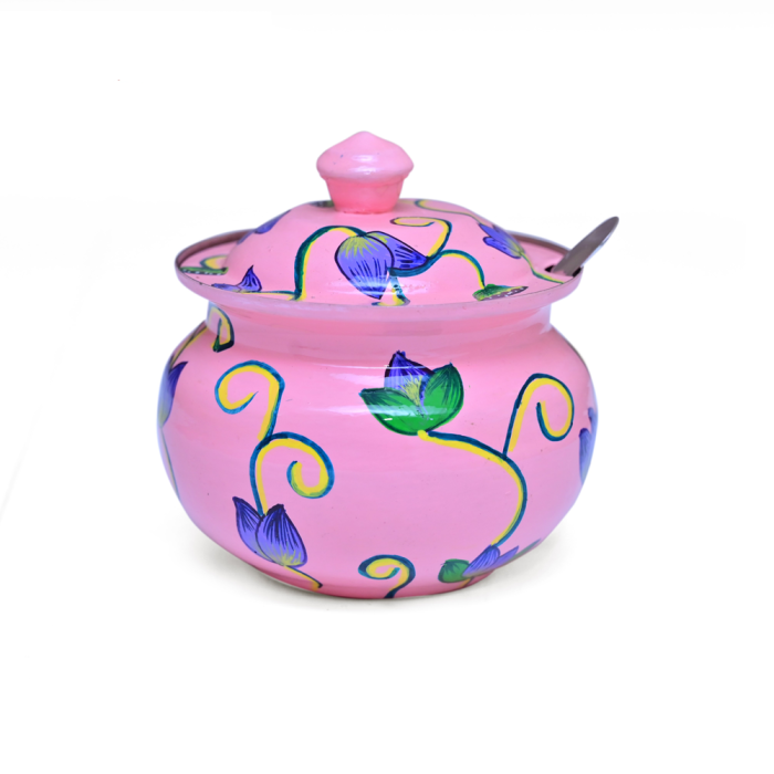 - Included: 1 Hand-Painted Ghee Container, 1 Secure Lid, and 1 Small Serving Spoon.