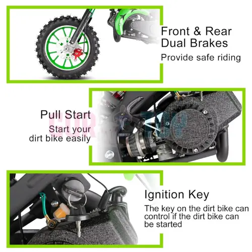 Built for young riders ready to experience real outdoor adventure, the GURTOY Extreme Off-Road Kids Dirt Bike 50cc delivers genuine petrol-powered performance in a compact, kid-friendly design. This is not a battery toy it’s a true mini dirt bike created for confidence, control, and excitement.