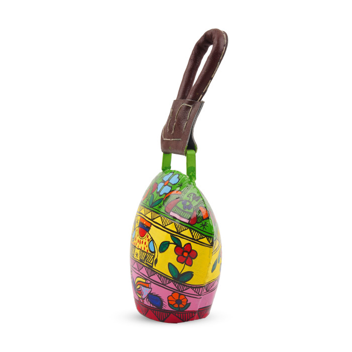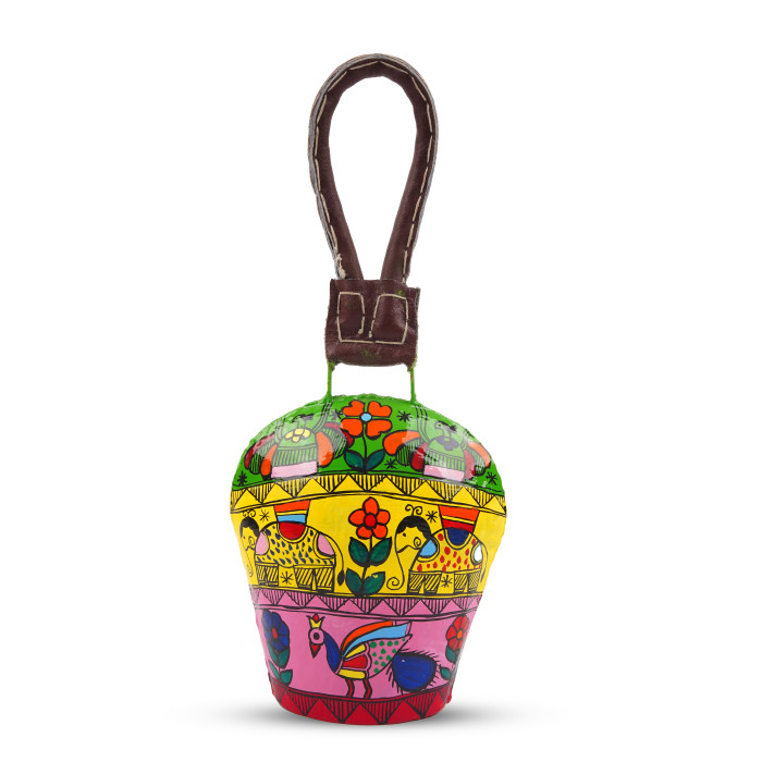 Bring the festive spirit of the alpine meadows to your home with the "Celebration" Hand-Painted Swiss Cow Bells. This premium set of four bells captures the iconic silhouette of traditional Swiss cowbells, reimagined as a vibrant canvas for artisanal folk art. Bathed in a joyous palette of celebratory reds, golds, and emeralds, each bell is meticulously hand-painted with intricate floral garlands and bohemian "Utsav" motifs. Crafted from high-quality metal with a nostalgic antique finish, these bells emit a rich, resonant chime that signifies joy and good fortune. Whether hung as a festive cluster on your main door or used to add a rustic-chic vibe to your garden, the "Celebration" set is a soulful tribute to heritage and the music of handmade art.