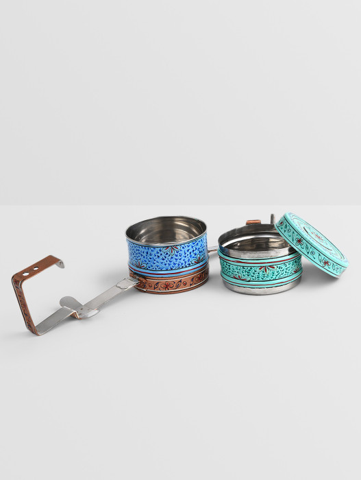 Upgrade your daily commute with the "Sleek-Safar" Hand-Painted Straight Tiffin, where modern utility meets traditional soul. Unlike the classic tapered tins, this straight-profile lunch carrier offers a contemporary, streamlined silhouette that slides easily into bags while providing ample space for your home-cooked meals. Each tier is hand-painted with vibrant folk motifs—ranging from playful paisleys to rhythmic geometric borders—turning a simple stainless steel container into a personalized piece of art. Durable, eco-friendly, and distinctively stylish, this 2-container set is for those who carry their culture and their lunch with equal pride.