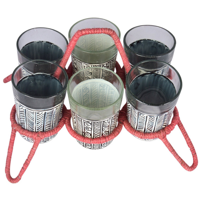 Elevate the classic Indian "Cutting Chai" ritual to a high-fashion experience with our "Monochrome Muse" Tea Glass Set. Moving away from traditional brights, this set embraces the timeless sophistication of Black and White. Each of the six glasses features a striking contrast—intricate white "Mandala" or "Warli" patterns hand-painted onto a sleek black-tinted or clear base. The set is housed in a matching hand-painted metal carrier, finished in a matte black or crisp white architectural style. This is the perfect set for the modern home that loves "Industrial-Chic" or "Scandinavian-Boho" vibes but wants to keep the soulful tradition of chai alive.