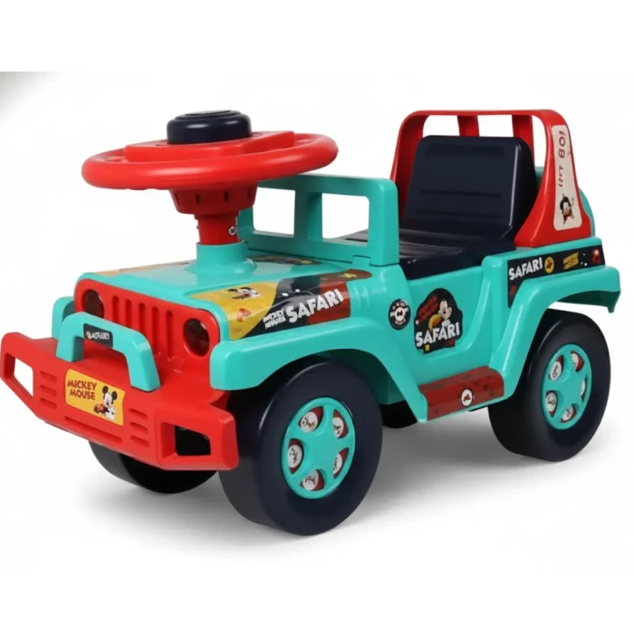 Designed for safety and long-lasting use, the Jeep features non-toxic, durable plastic, a supportive high backrest, anti-slip wheels, and a spacious seat. The manual foot-to-floor operation strengthens legs, enhances balance, and improves coordination while keeping toddlers engaged in active play.