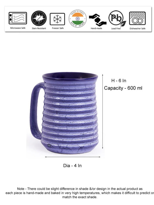 Each mug is artisan-crafted using durable ceramic stoneware, offering a solid, premium feel and long-lasting performance. The organic blue marble finish features natural tonal variations, making every piece visually distinct. As each mug is handmade, slight differences in shade, size, and texture are part of its authentic artisanal character.