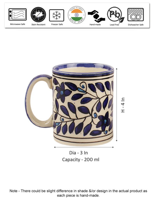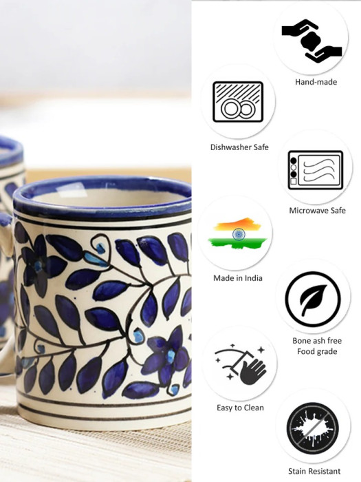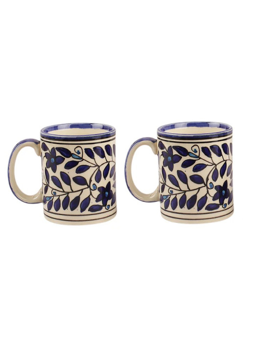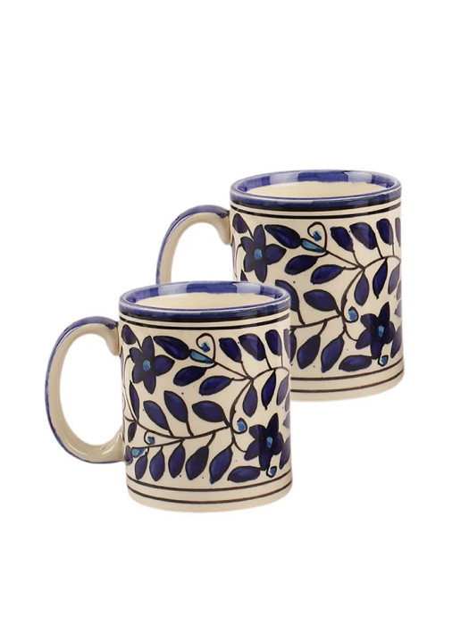 Blue Blossom Hand Painted Ceramic Coffee Mugs (Set of 2)