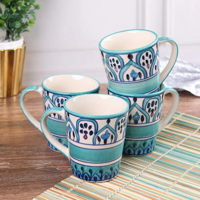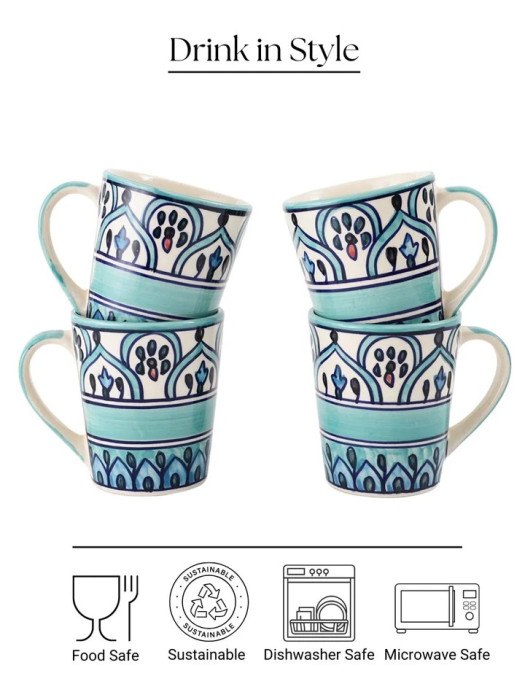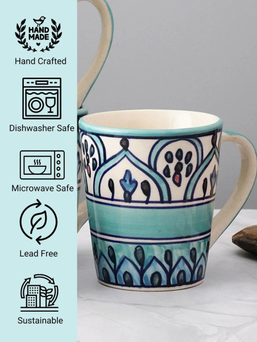 Each mug undergoes an elaborate artisanal process clay baking, hand sketching, detailed painting, re-baking, and glazing resulting in vibrant contrasts, layered tones, and intricate motifs rooted in India’s cultural heritage. Every piece is individually hand-painted, making each mug truly one of a kind, with subtle variations in color, shape, and size that enhance its handcrafted charm.