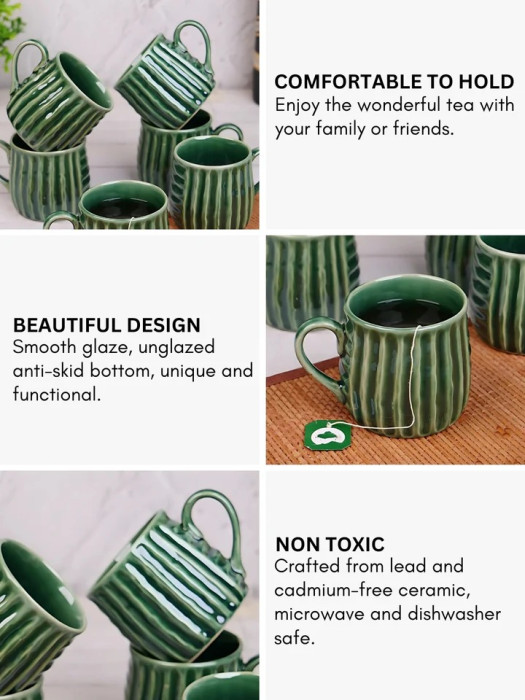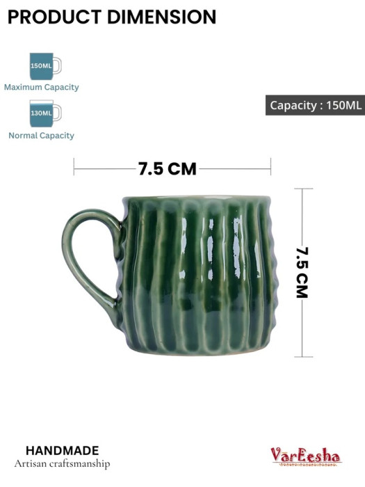 Crafted from premium, lead-free ceramic, the mugs are durable, food safe, and easy to maintain. Each mug has a 150 ml capacity and a balanced size of 7.5 cm diameter x 7.5 cm height, making it ideal for tea, coffee, green tea, or herbal infusions. Designed for modern convenience, the mugs are microwave safe and dishwasher safe.