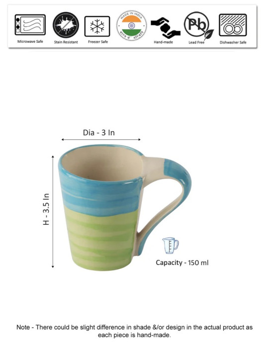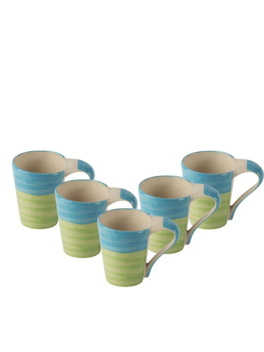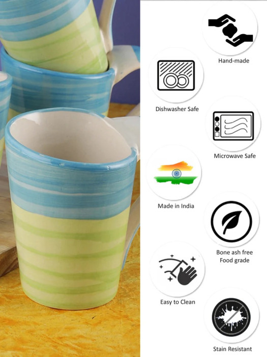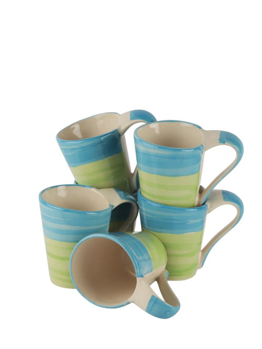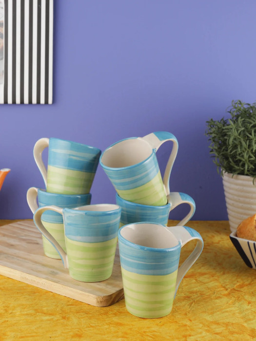 Blue & Green Handcrafted Ceramic Tea & Coffee Mugs (Set of 6)