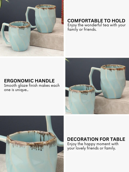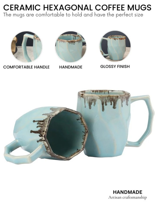 Experience calm and comfort in every sip with the Minimal Mint Glaze Hexagonal Ceramic Coffee Cups Set of 2 from VarEesha. Inspired by the serenity of nature, this thoughtfully designed mug set reflects peace, balance, and understated elegance through its soothing pastel mint hue and modern hexagonal form.