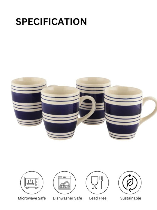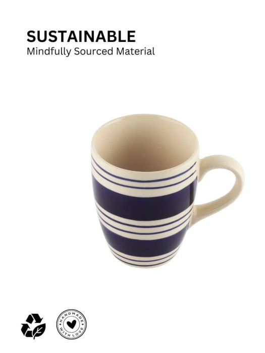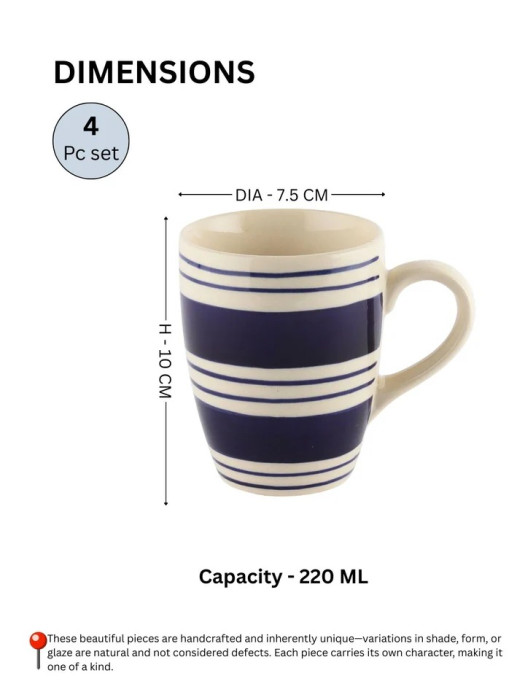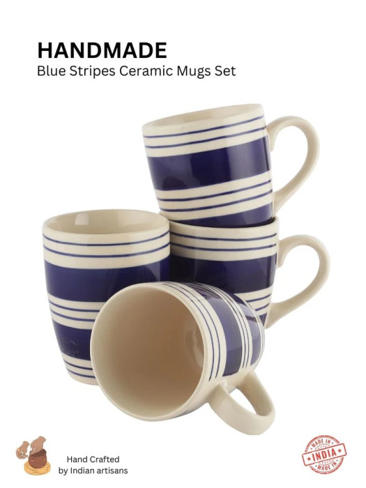Crafted from premium-quality ceramic, each mug is baked and glazed at high temperatures to ensure durability, strength, and a smooth finish. The bold blue stripe design creates a striking visual contrast, making these mugs suitable for both everyday use and special occasions. As each piece is carefully finished, the set reflects a perfect balance of tradition and modern aesthetics.