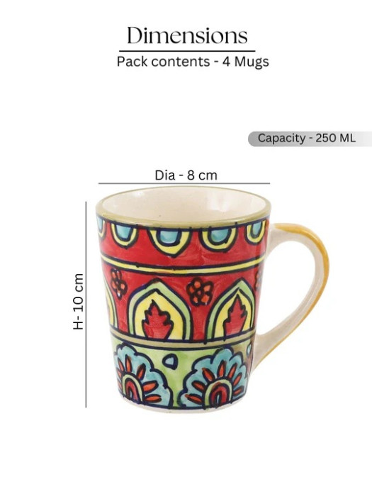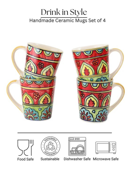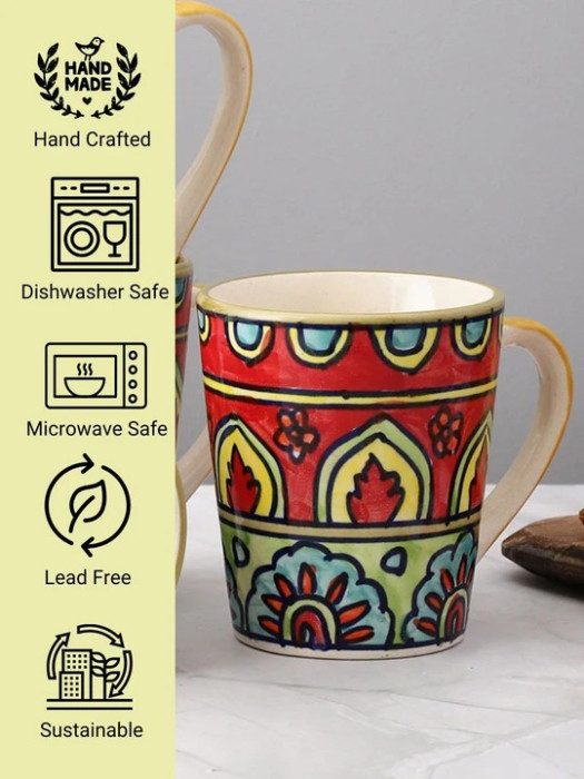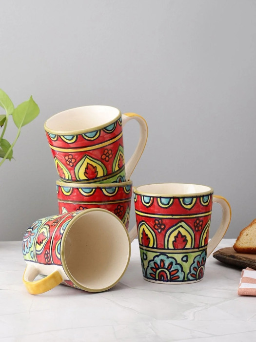 Crimson Fern Hand Painted Ceramic Coffee Mugs (Set of 4)