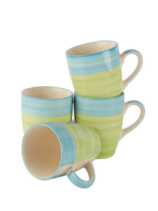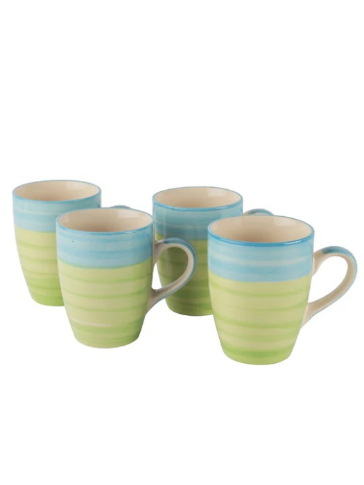 Bliss Blue & Green Ceramic Coffee Mugs (Set of 4)