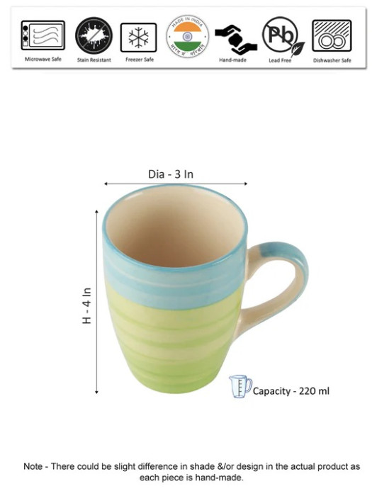 Made from premium lead-free ceramic and baked at high temperatures, these mugs are durable, microwave safe, and dishwasher friendly. Each mug measures 7.5×10 cm with a 220 ml capacity, perfect for coffee, milk, tea, or any favorite beverage. Since each piece is handmade, slight variations in color and finish make every mug one-of-a-kind.