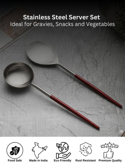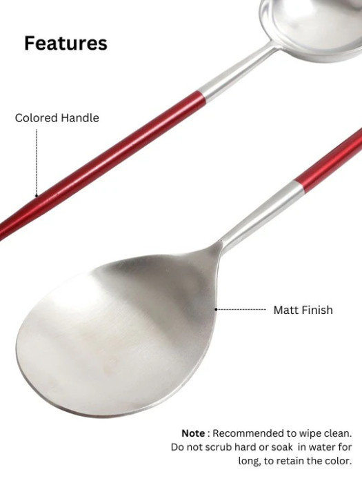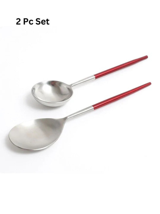 Luminous Maroon Red Handled Matt Stainless Steel Serving Spoons (Set of 2)