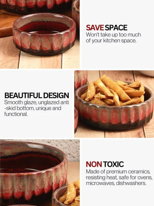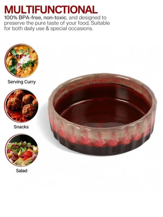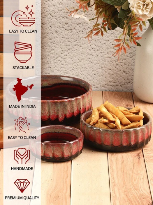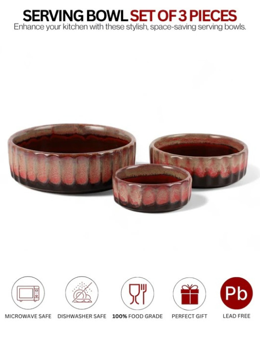 Rustic Copper Red Handcrafted Ceramic Serving Bowls (Set of 3)