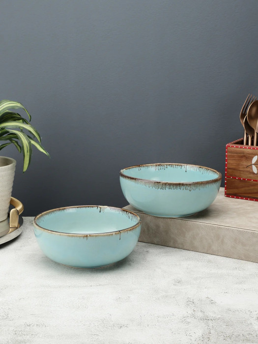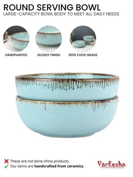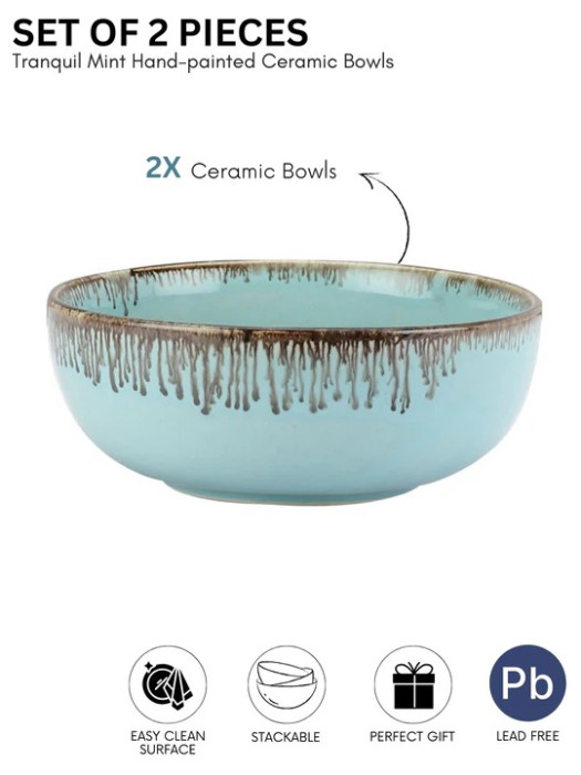 Serene Mint Green Ceramic Round Serving Bowls (Set of 2)