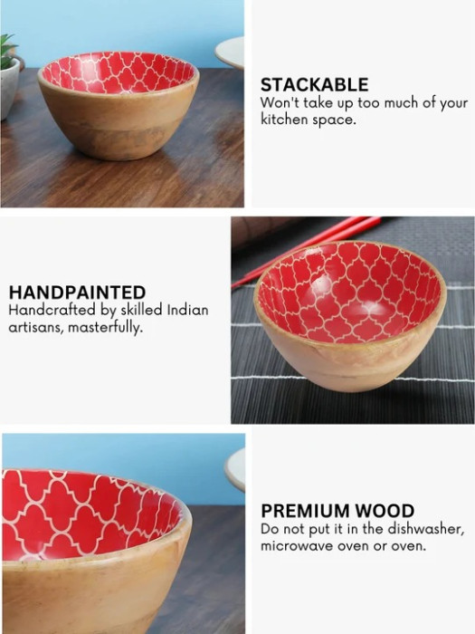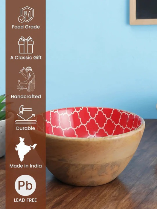 Maintenance is effortless simply wipe with a damp cloth after use and avoid prolonged soaking. With a diameter of 7 inches and height of 4 inches, it offers a generous 500 ml capacity. Microwave and dishwasher use are not recommended, preserving the natural beauty and finish of this exquisite wooden bowl. A thoughtful addition to your home or a perfect gifting option for festive and special occasions.