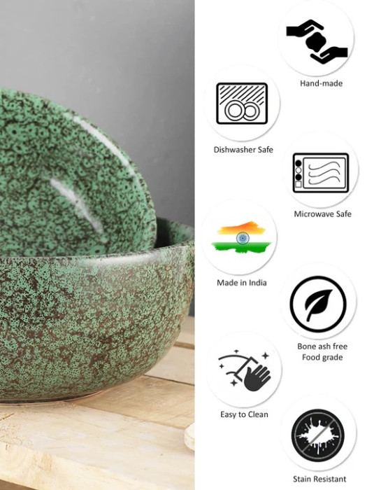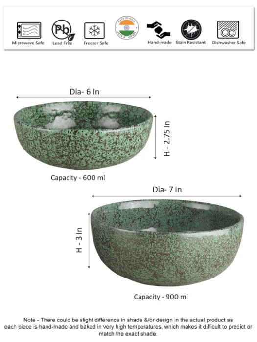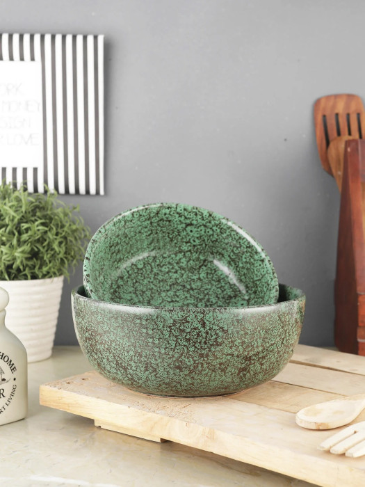 Lush Green Hand painted Ceramic Serving Bowls (Set of 2)