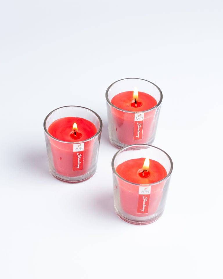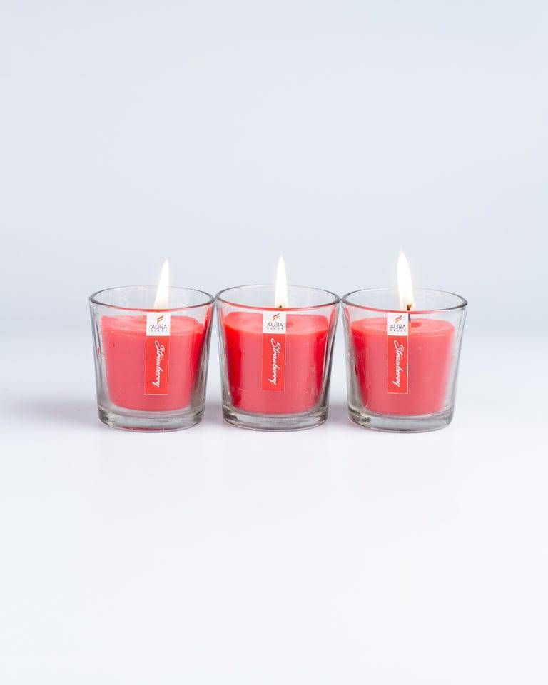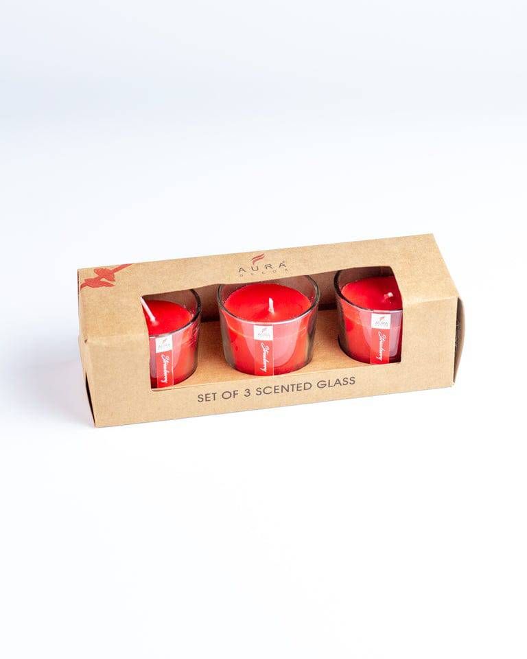 Set of 3 Glass Votive Candle (Strawberry) - 1 Unit