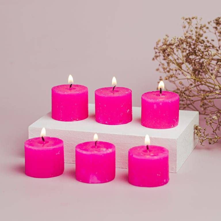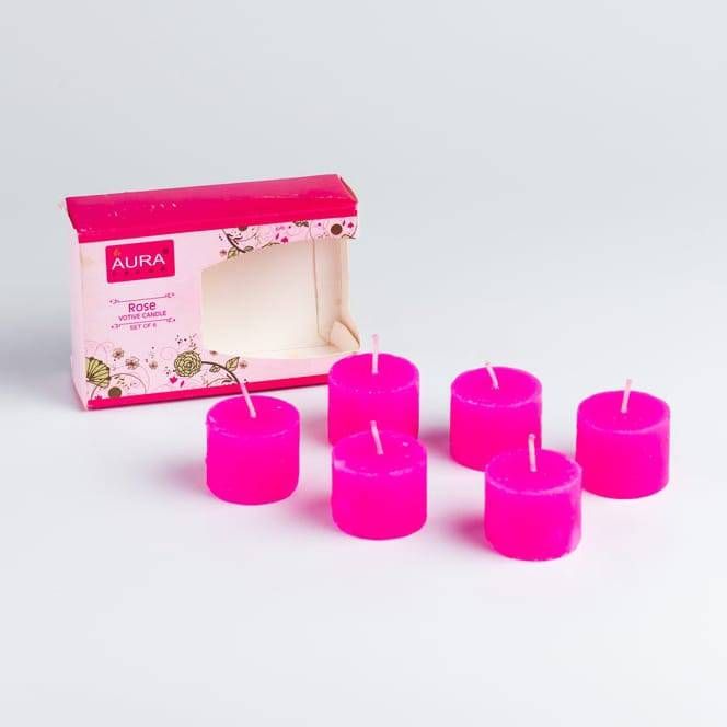 • Set of 6 beautifully crafted votive candles with a soothing rose fragrance