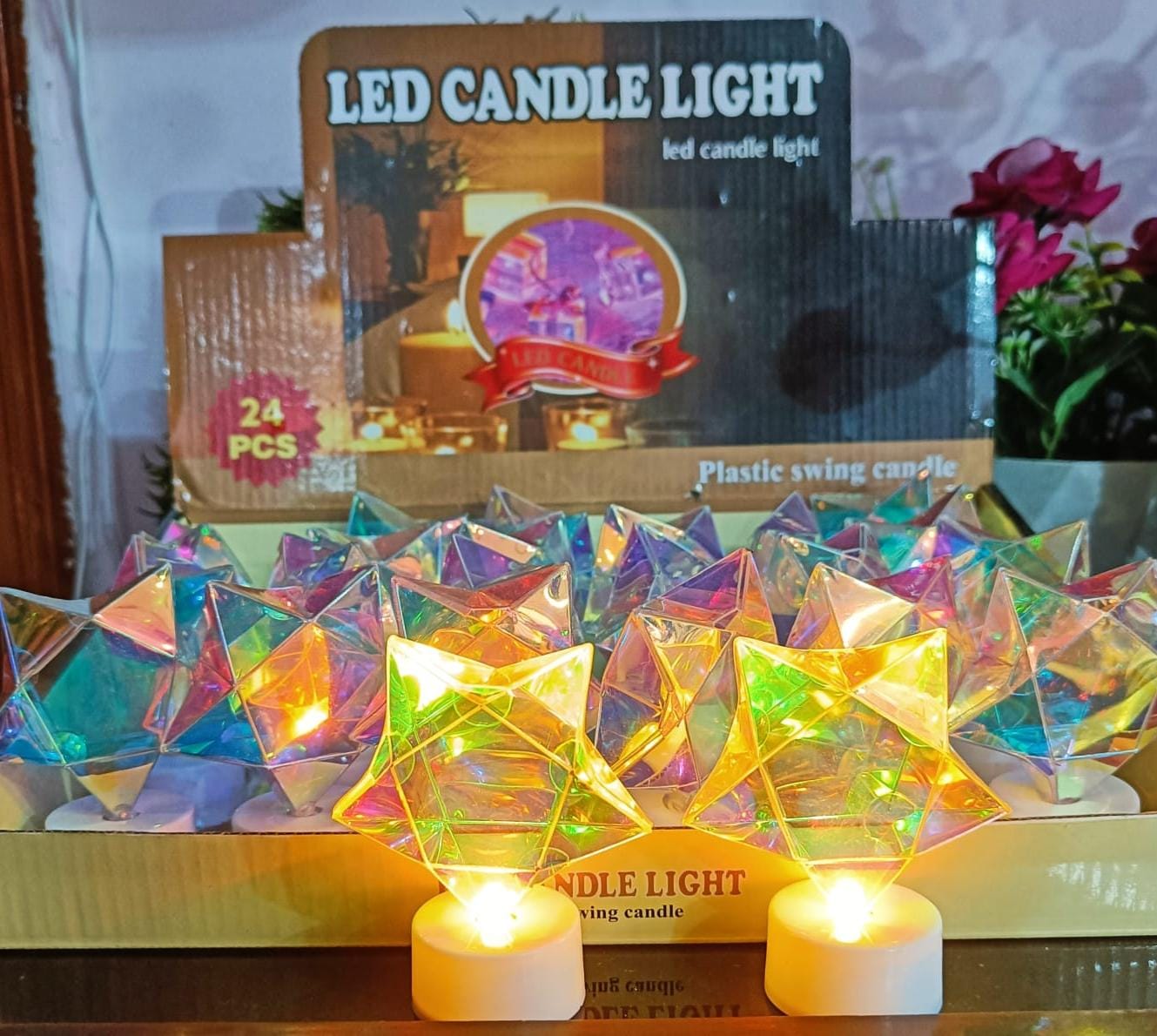 24 Piece Box Rainbow Colour Star Design LED Candle - 1 Unit