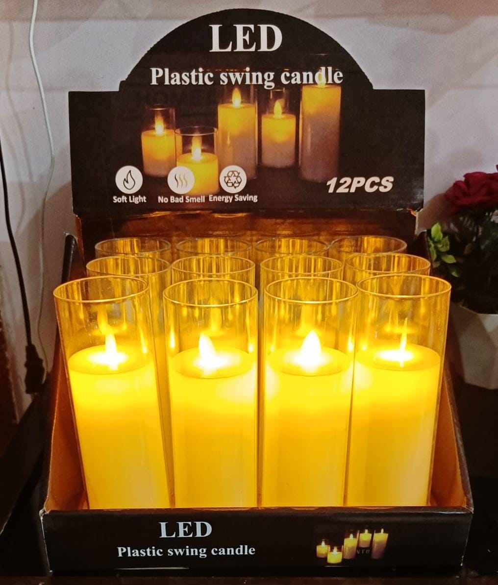 12 Piece Box Smokeless Flickering Wick Candle With Glass
